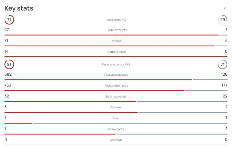 Οι Ισπανοί ήταν καταιγιστικοί και σκόραραν 6 γκολ σε 27 τελικές, με την Εθνική μας να φτιάχνει μόλις μια τελική στο 72ο λεπτό με τον Τζιωνή...