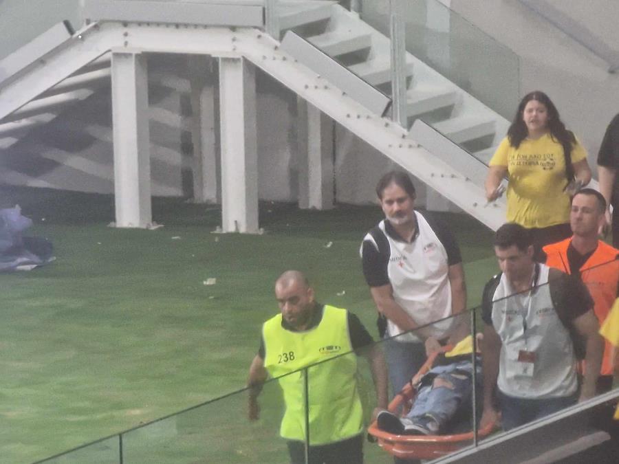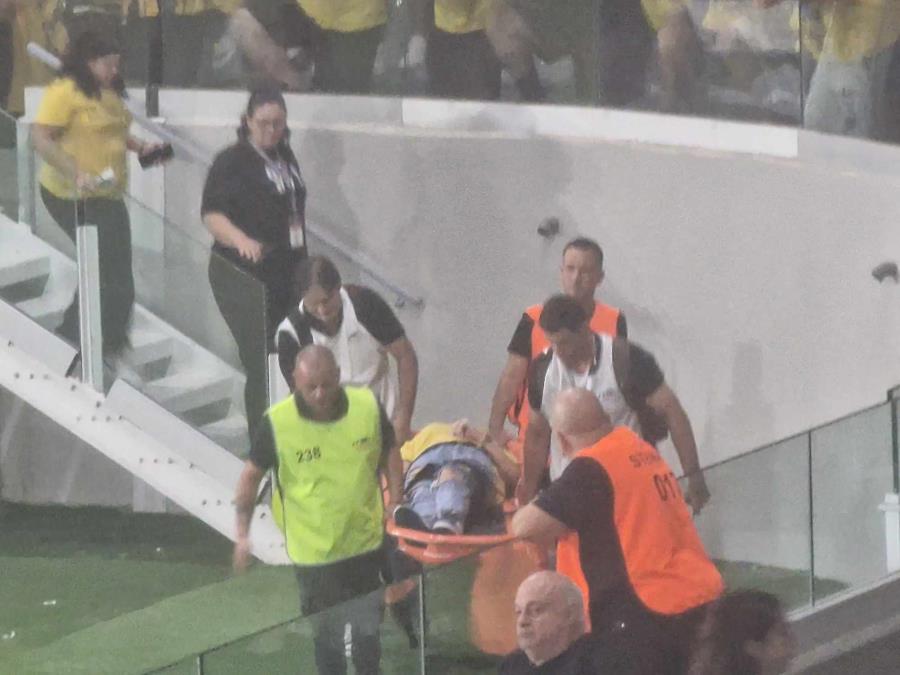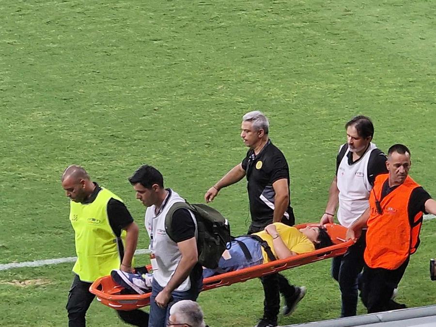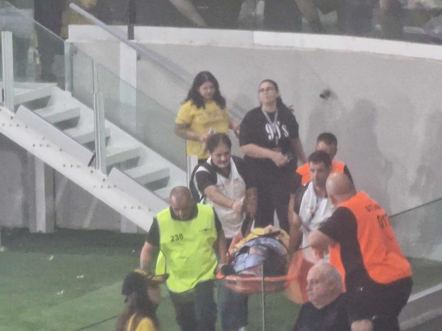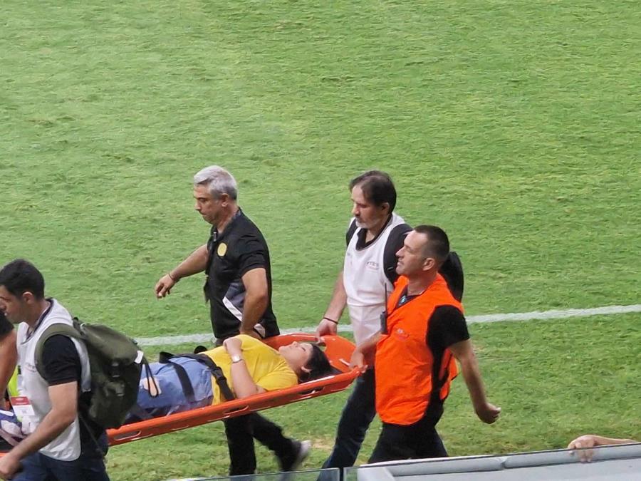 Η γυναίκα τοποθετήθηκε στο φορείο και μεταφέρθηκε εκτός αγωνιστικού χώρου για εξετάσεις.