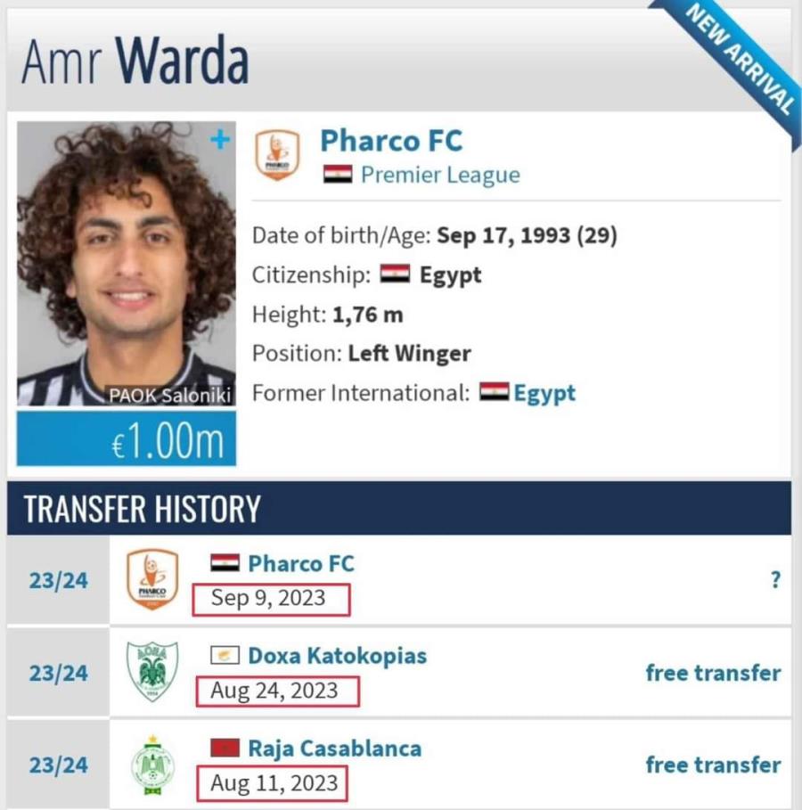 Ο Αιγύπτιος άσος ανακοινώθηκε από την Φάρκο της Αιγύπτου και επέστρεψε στην πόλη όπου γεννήθηκε, την Αλεξάνδρια.