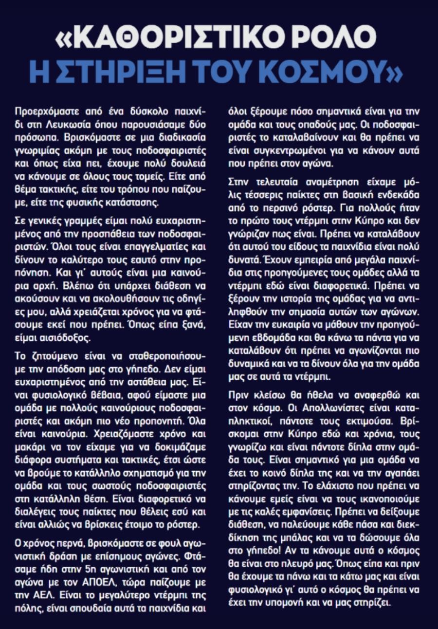 Τι δήλωσε ο κόουτς των κυανόλευκων:
