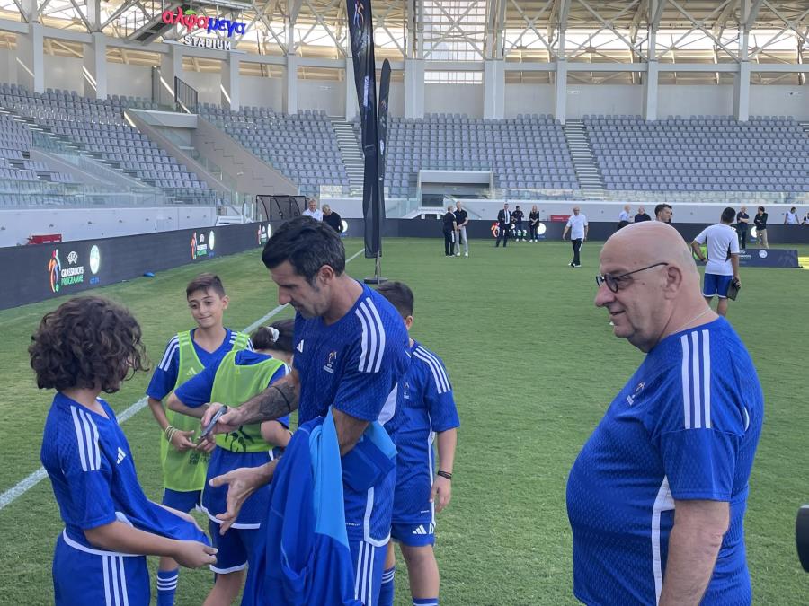 Ο Πορτογάλος πρώην αστέρας της Μπαρτσελόνα και της Ρεάλ δεν προλάβαινε να βγάζει φωτογραφίες και να μοιράζει αυτόγραφα σε μικρούς και μεγάλους.