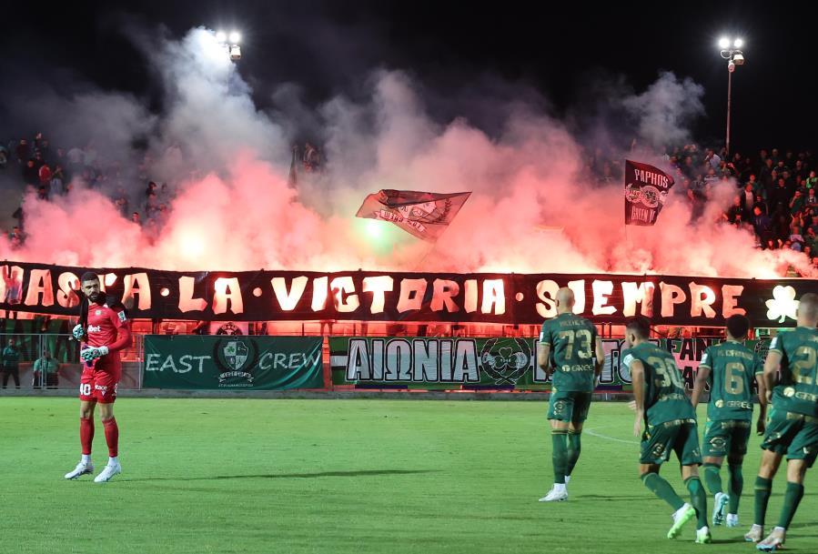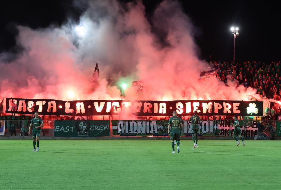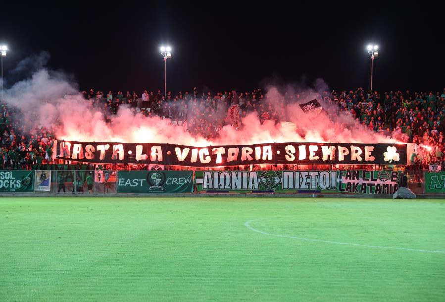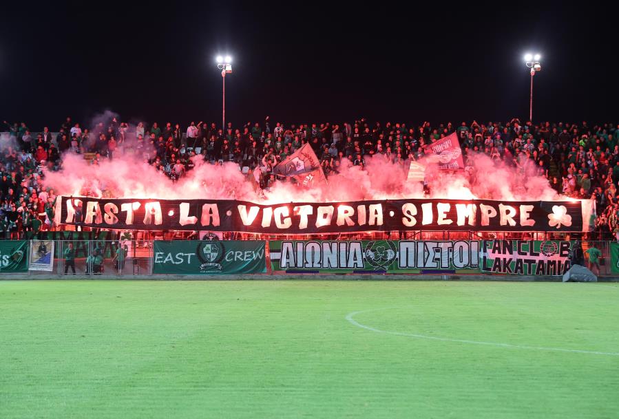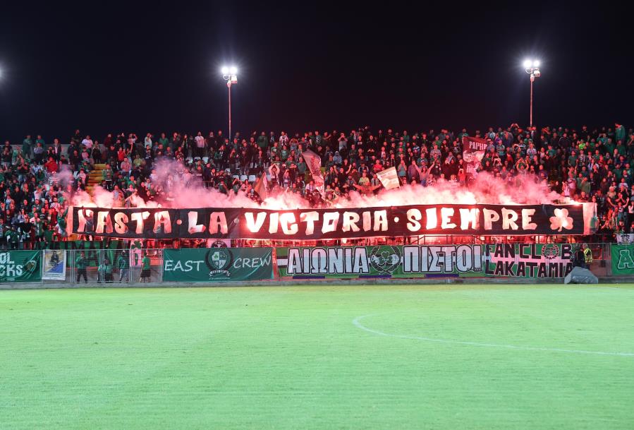 Με το γνωστό σύνθημα «Hasta La Victoria Siempre» υποδέχθηκαν τους παίκτες της Ομόνοιας στον εκτός έδρας αγώνα με τη Δόξα οι φίλοι του τριφυλλιού, που γέμισαν την κερκίδα.