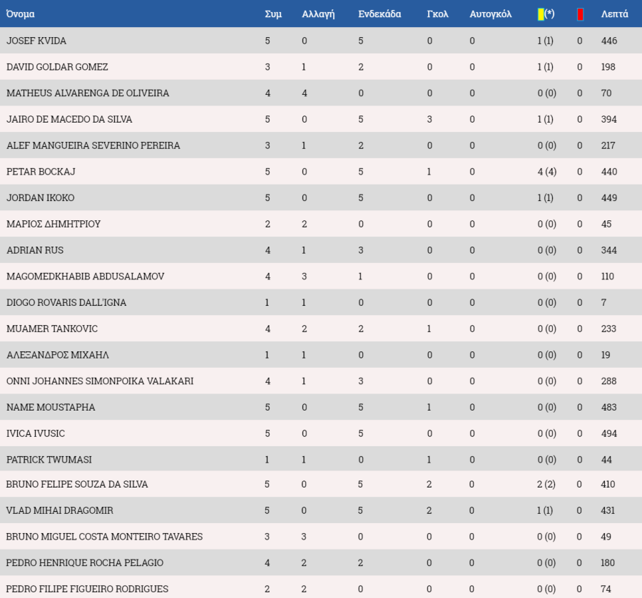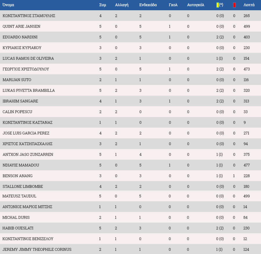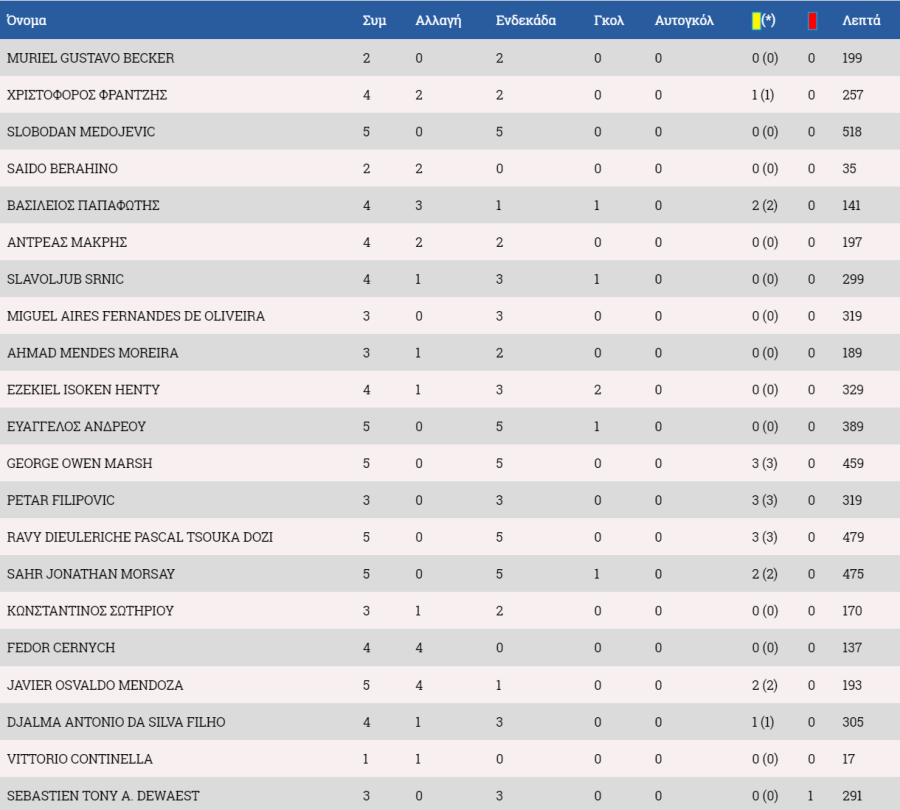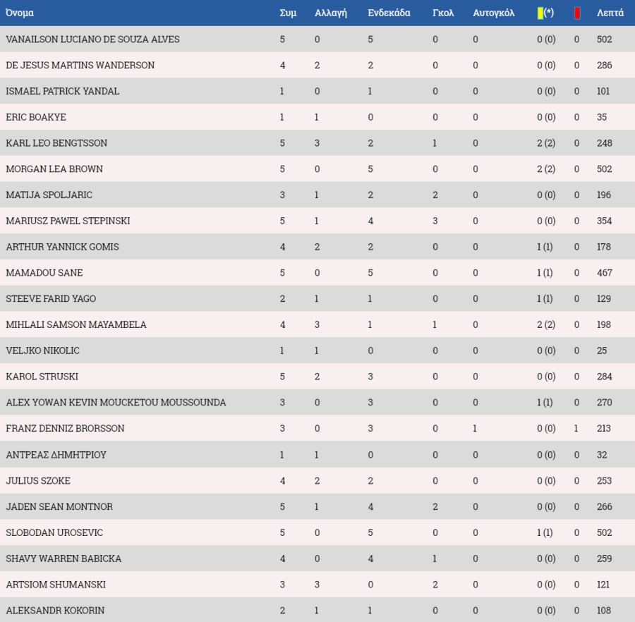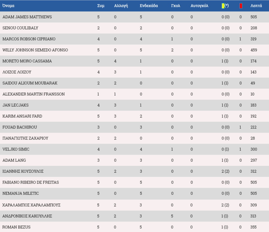*6 αλλαγές σε σχέση με Οθέλλο (3η αγων.): Μπογκατίνοφ, Ριστέφσκι, Σπιρόφσκι, Νικολάου, Ηλία, Χριστοφή αντί Μάρκοβιτς,Λίπσκι, Πεχλιβάνη, Φιακά, Ακσεντίγεβιτς.