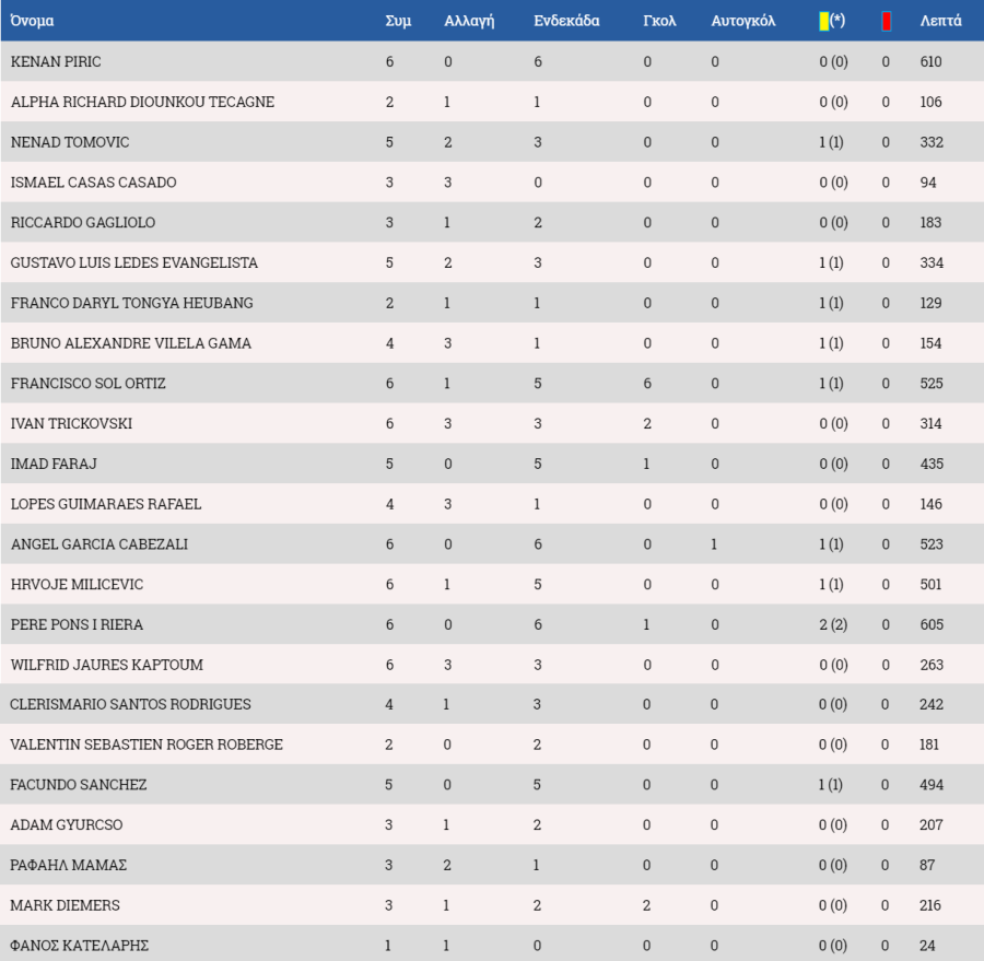 Στον πάγκο: Μάρκοβιτς, Σταυρινού, Γκόμεζ, Μπράντονιτς, Μπάικερ, Ενέμ, Ακσεντίεβιτς.