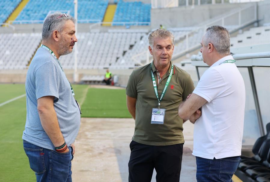 Ο πρόεδρος της Ομόνοιας, Σταύρος Παπασταύρου είναι στο ΓΣΠ για τον αγώνα με την ΑΕΖ και τα είπε με τους Γρηγόρη, Γιάνσον και Ταραπουλούζη πριν την έναρξη του ματς.