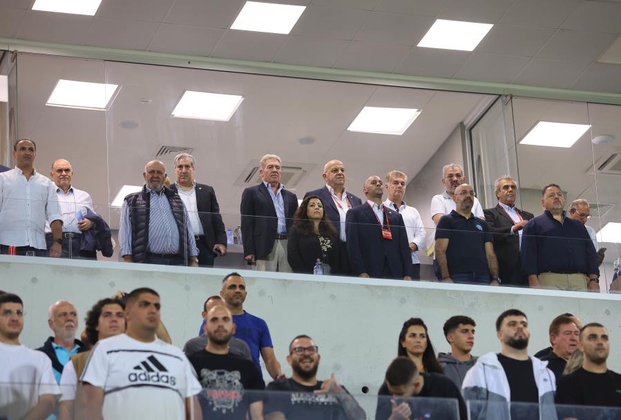 Λίγες εβδομάδες μετά το... σήριαλ Μάριου Ηλία ο πρόεδρος της Ομόνοιας, Σταύρος Παπασταύρου και ο αναπληρωτής πρόεδρος Δημήτρης Γρηγόρη βρίσκονται στα θεωρεία στην Αρένα για τον αγώνα της Κύπρου με τη Νορβηγία μαζί με τον πρόεδρο της ΚΟΠ, Γιώργο Κούμα και τον πρόεδρο του Εθνικού, Κίκη Φιλίππου.