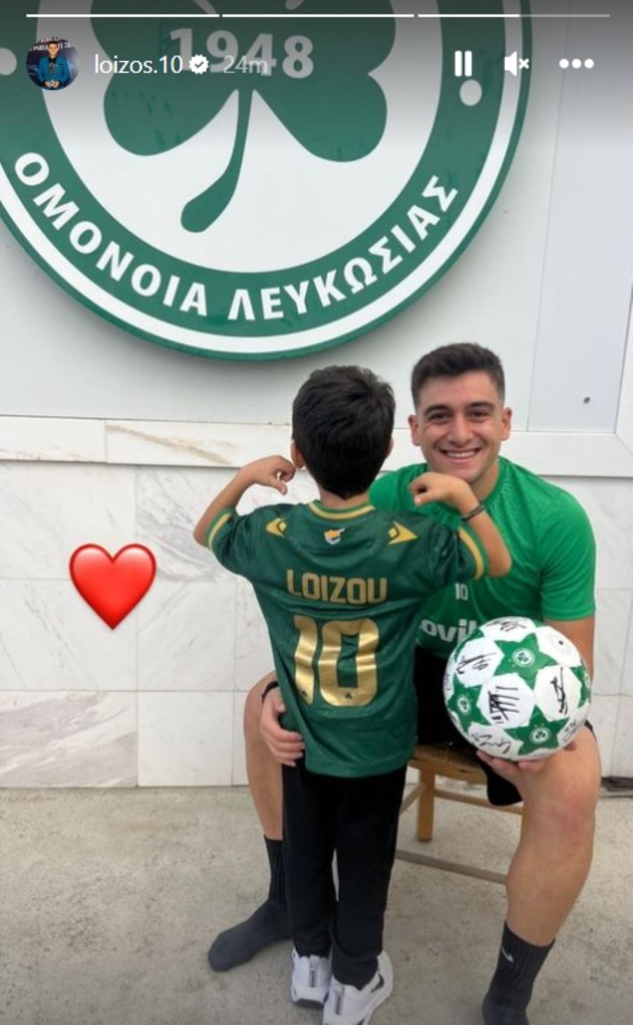 Ο άσος της Ομόνοιας συνάντησε ένα μικρό φίλο της Ομόνοιας με τη φανέλα του και πόζαραν μαζί για μια φωτογραφία.