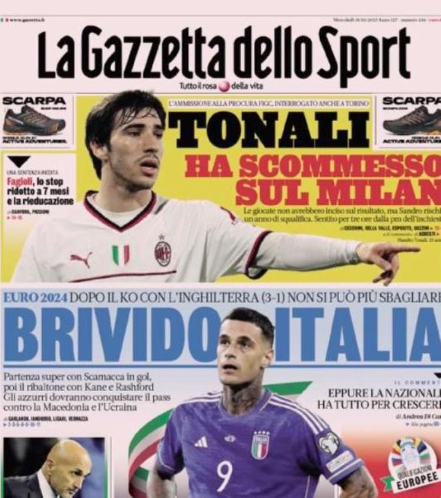 Αποκλειστικό ρεπορτάζ της εφημερίδας Gazzetta dello Sport αναφέρει πως ο Σάντρο Τονάλι φέρεται να πόνταρε σε παιχνίδια της Μίλαν όσο ήταν παίκτης της!
