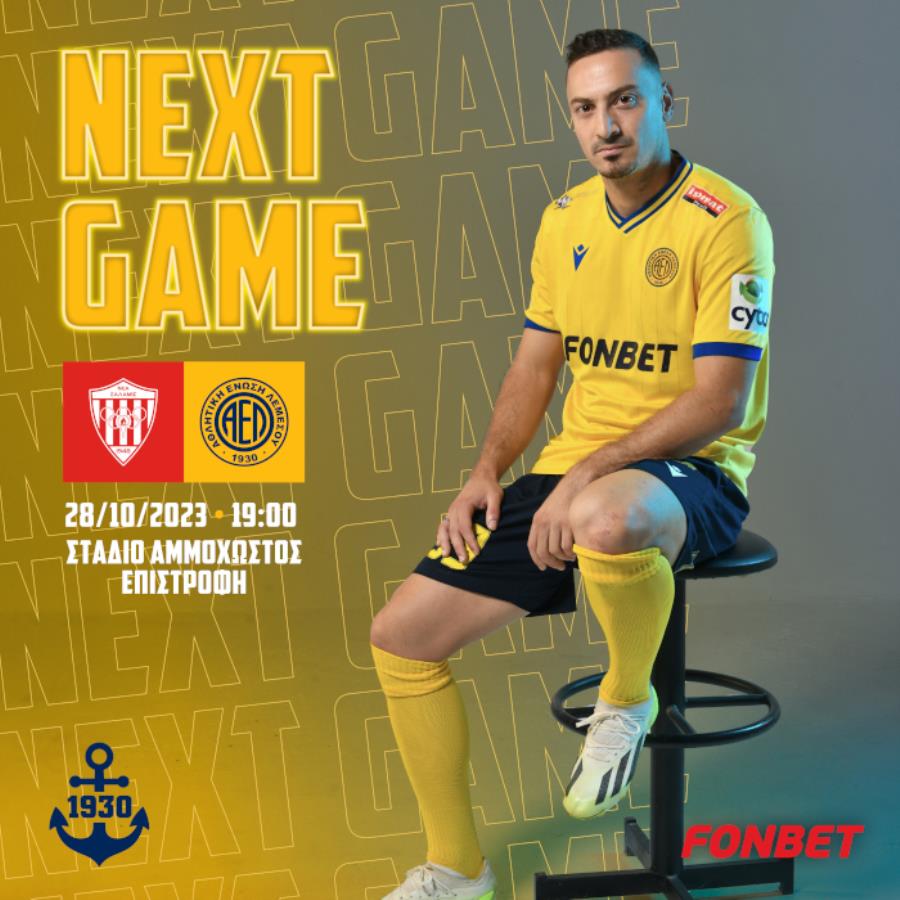 Η ΑΕΛ Λεμεσού ανακοινώνει την έναρξη της προπώλησης των εισιτηρίων για τoν εκτός έδρας αγώνα με την Νέα Σαλαμίνα, που είναι προγραμματισμένος για τo Σάββατο 28/10/23 στις 19.00 στο «Στάδιο Αμμόχωστος», για την 9η αγωνιστική του πρωταθλήματος.