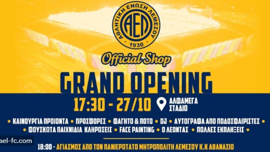 Το Διοικητικό Συμβούλιο και ολόκληρη η οικογένεια της ΑΕΛ προσκαλούν τον κάθε ΑΕΛΙΣΤΑ ξεχωριστά και όλους τους φίλους της ομάδας μας, στα εγκαίνια του νέου AEL Official Shop.
