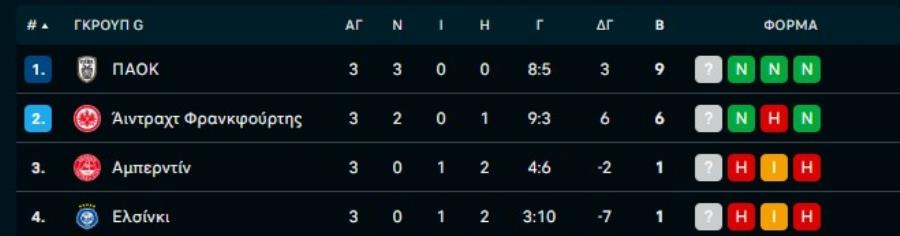 Με αυτόν τον τρόπο, οι Γερμανοί έμειναν στο κυνήγι της πρώτης θέσης, με τον ΠΑΟΚ να κάνει επική ανατροπή στη Σκωτία απέναντι στην Αμπερντίν και να παραμένει μόνος πρώτος με 3/3.