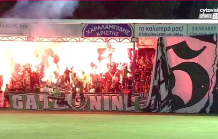 Οι οπαδοί της Ομόνοιας 29ης Μαίου έδωσαν δυναμικό παρών στον αγώνα με την ΕΝΠ και δημιούργησαν εντυπωσιακό σκηνικό στην κερκίδα με την είσοδο των ομάδων.
