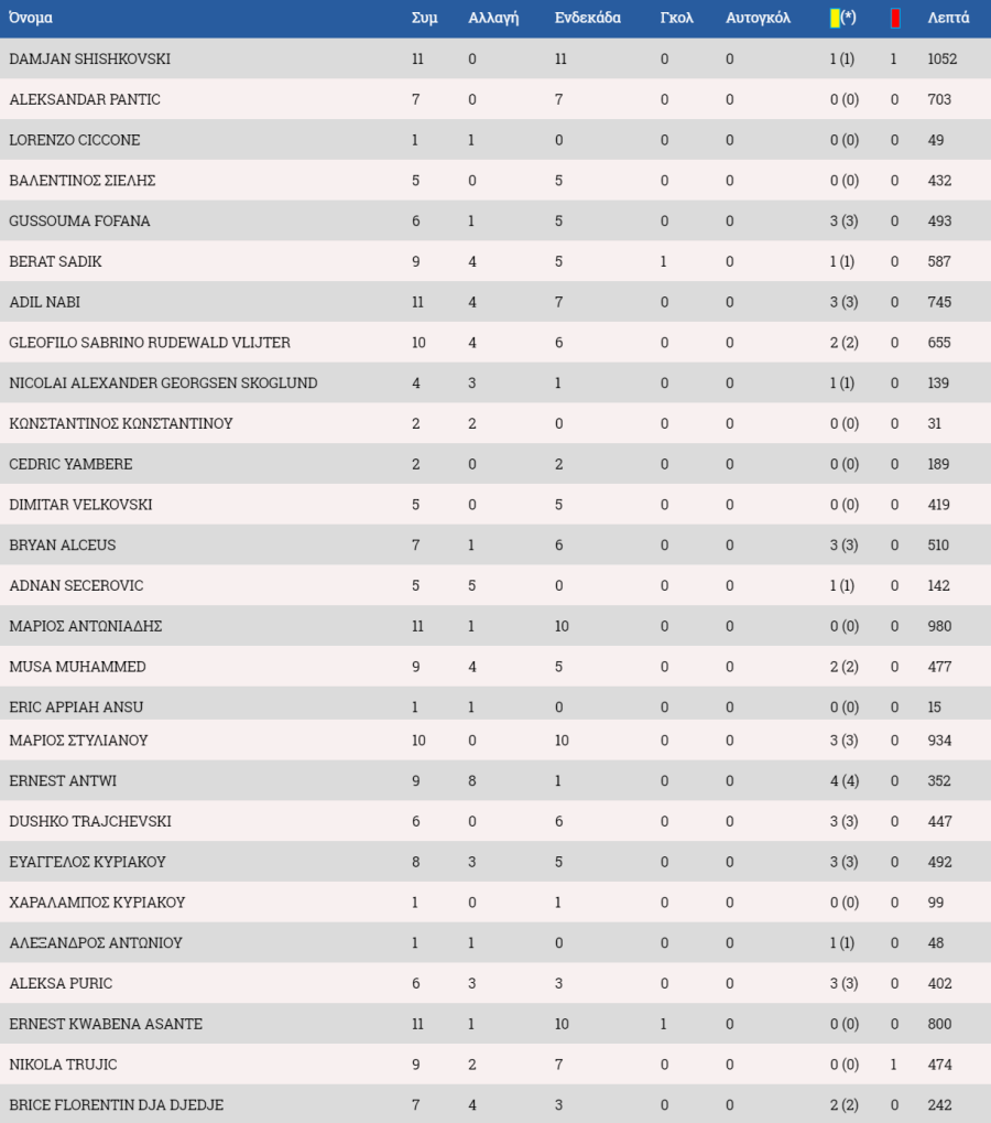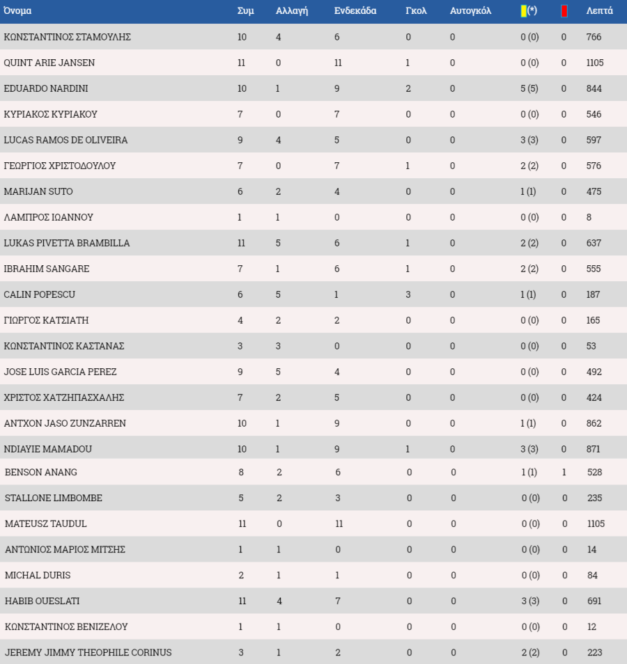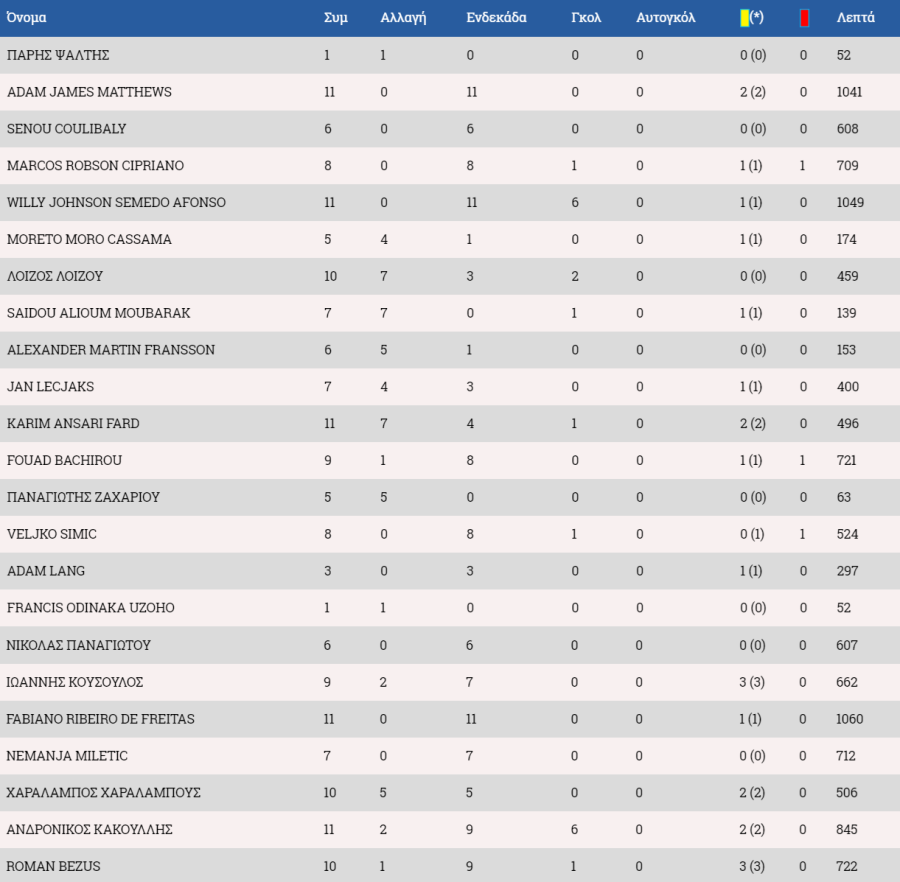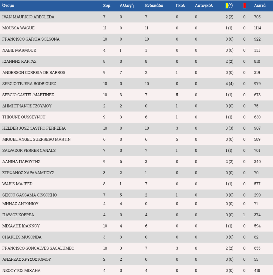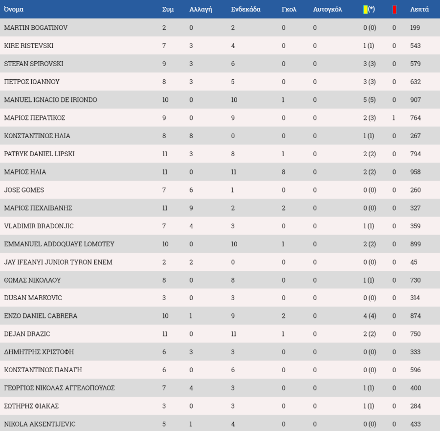 Στον πάγκο: Ολιβέιρα, Κυριάκου, Σωτηρίου, Ανδρέου, Μαρς.