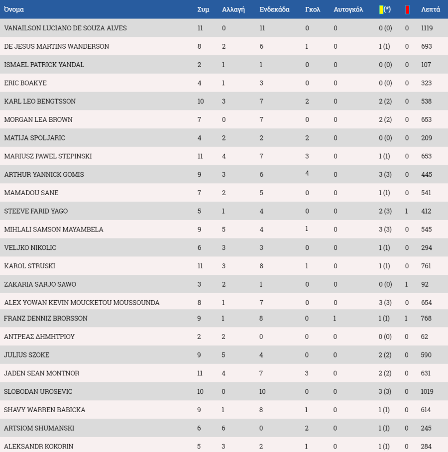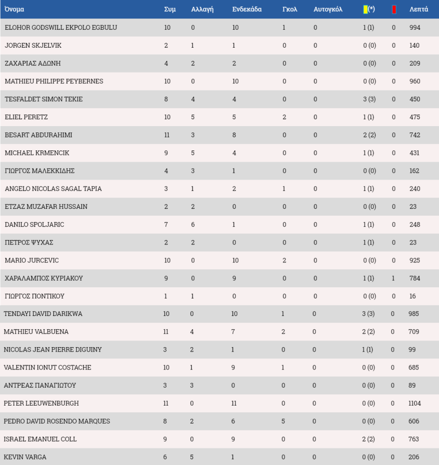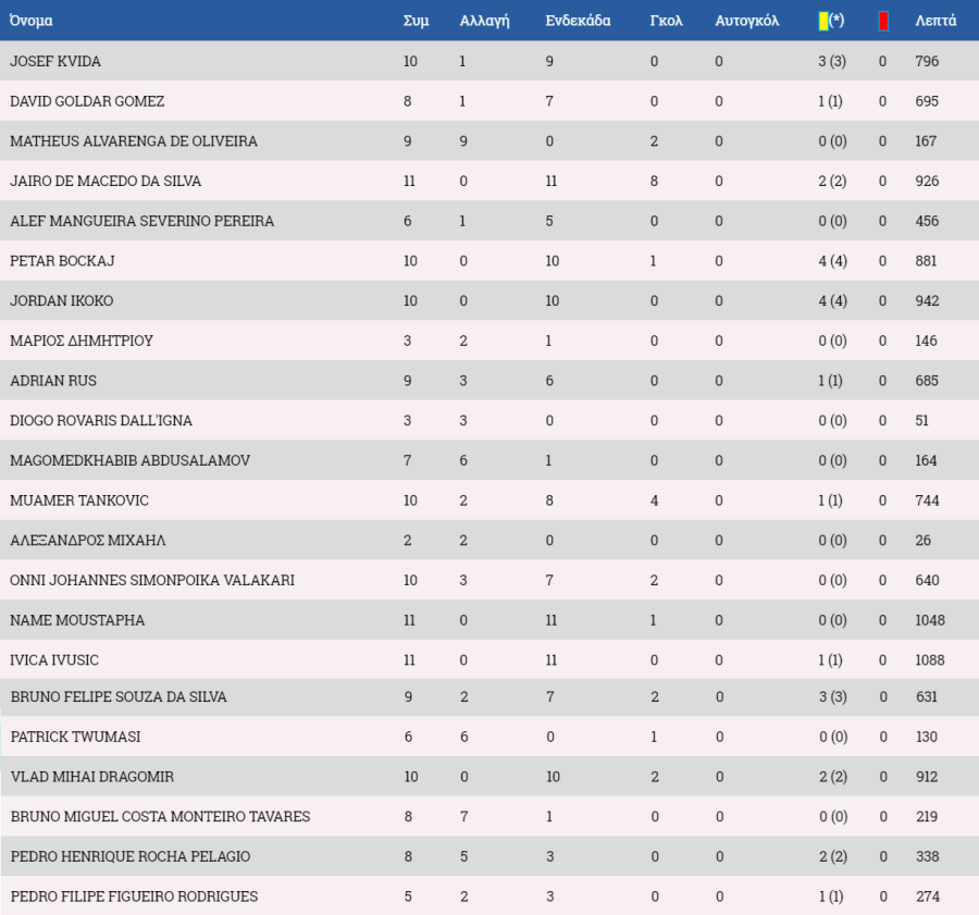 Τα στατιστικά των ποδοσφαιριστών: