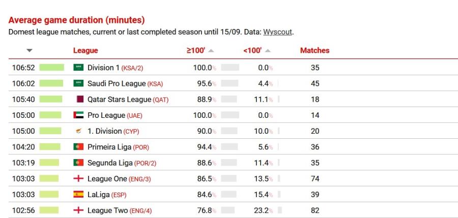 10% των παιχνιδιών του κυπριακού πρωταθλήματος ξεπέρασαν τα 100 λεπτά.
