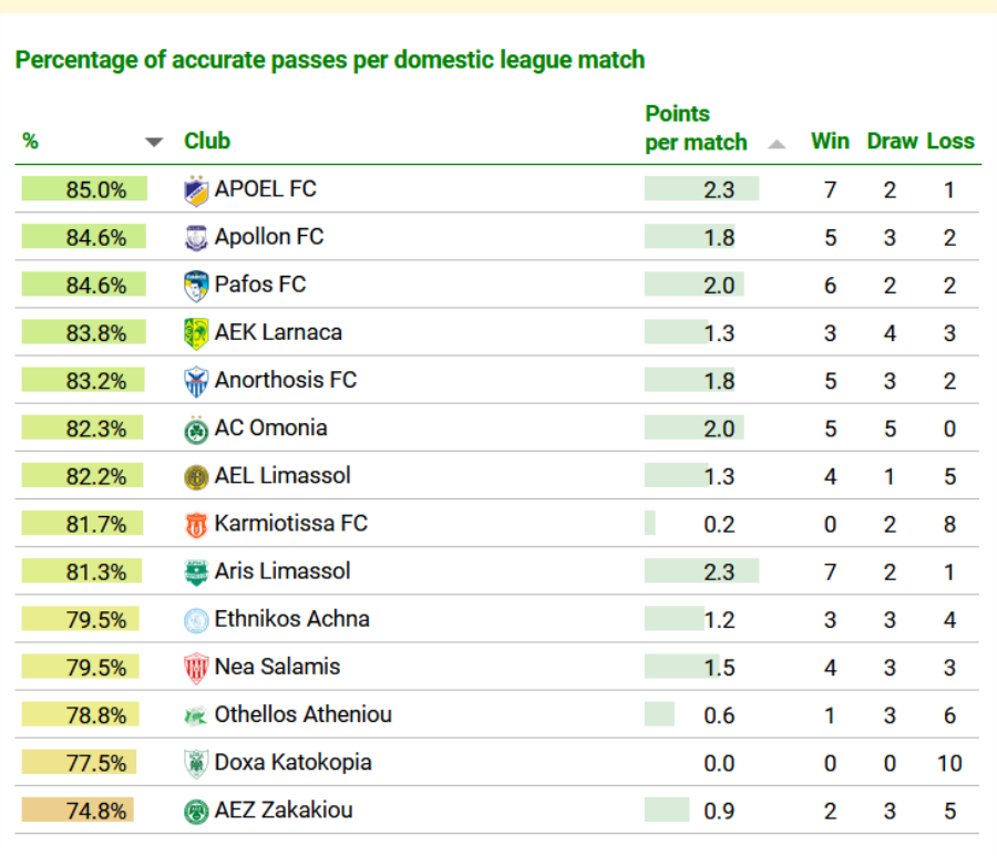 Από... κοντά ακολουθούν Απόλλωνας και Πάφος με 84,6%.