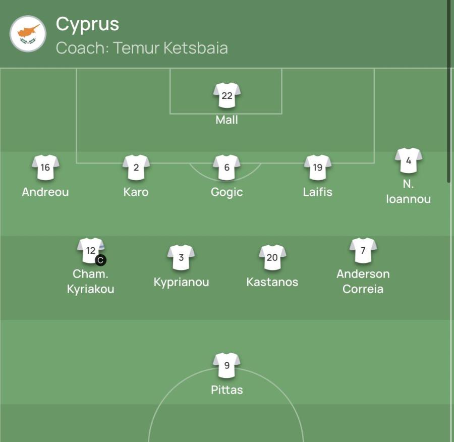 Δείτε την αρχική ενδεκάδα που επέλεξε ο Ομοσπονδιακός προπονητής της Εθνικής Κύπρου, Τιμούρ Κετσπάγια, για το αποψινό (19:00) παιχνίδι με αντίπαλο την Ισπανία στο στάδιο «Αλφαμέγα», για την προκριματική φάση του EURO 2024: