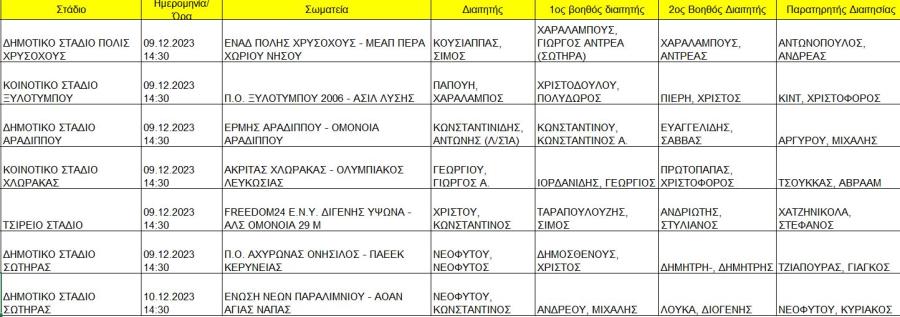 Η ΚΟΠ ανακοινώνει τους διαιτητές των αγώνων της 11ης αγωνιστικής του Πρωταθλήματος Β' Κατηγορίας που θα διεξαχθούν το Σαββατοκύριακο 9-10 Δεκεμβρίου 2023.