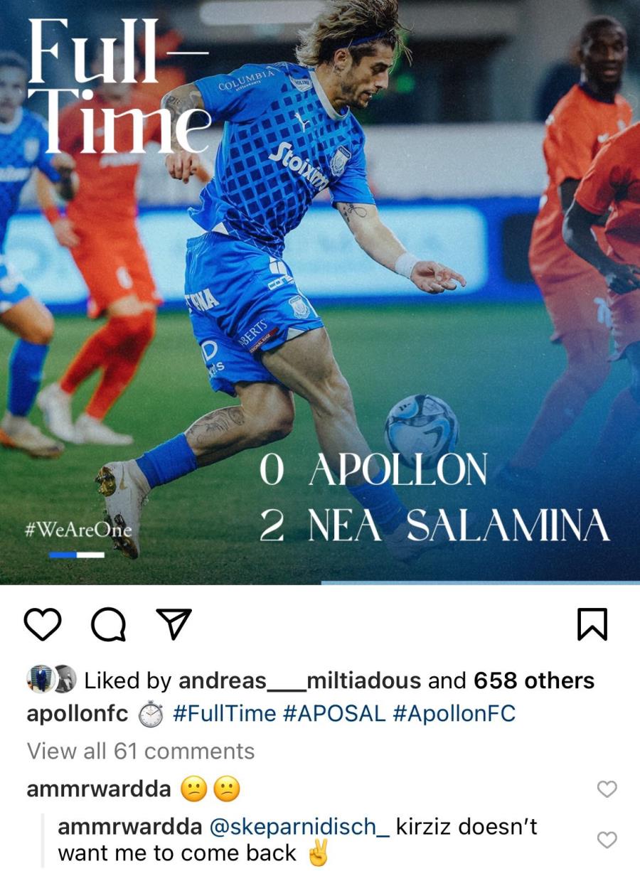 Αρκετοί οπαδοί της Λεμεσιανής ομάδας ζήτησαν στον Ουάρντα να επιστρέψει στον Απόλλωνα, ωστόσο ο ίδιος έγραψε «ο Κίρζης δεν θέλει να επιστρέψω»