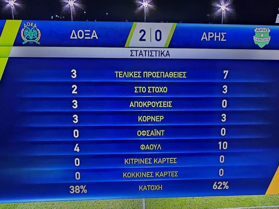 Δόξα-Άρης 2-0 (Ασάντε 34', Γκομίς 45'+αυτ.)