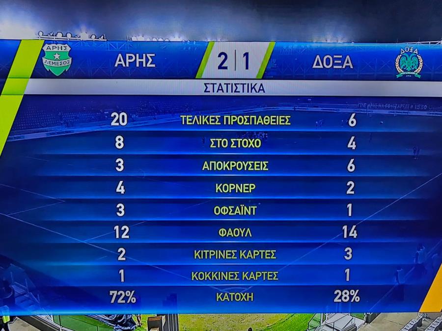 Άρης-Δόξα 2-1 (Σουμάνσκι 58', Γκομίς 85' πεν./ Μπρόρσον 65' αυτ.)