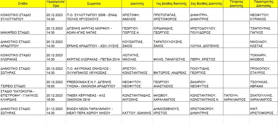 Η ΚΟΠ ανακοινώνει τους διαιτητές των αγώνων της 13ης αγωνιστικής του Πρωταθλήματος Β' Κατηγορίας που θα διεξαχθούν στις 20 και 21 Δεκεμβρίου 2023.