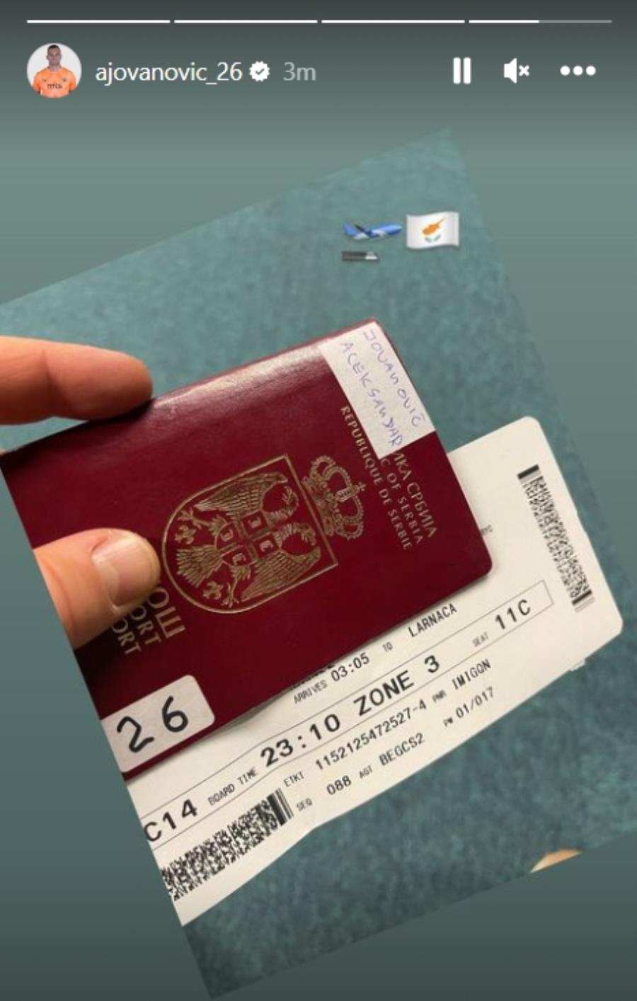 Ο Σέρβος τερματοφύλακας ανάρτησε μια φωτογραφία στο Instagram του με το διαβατήριο του και το εισιτήριο του για Κύπρο.
