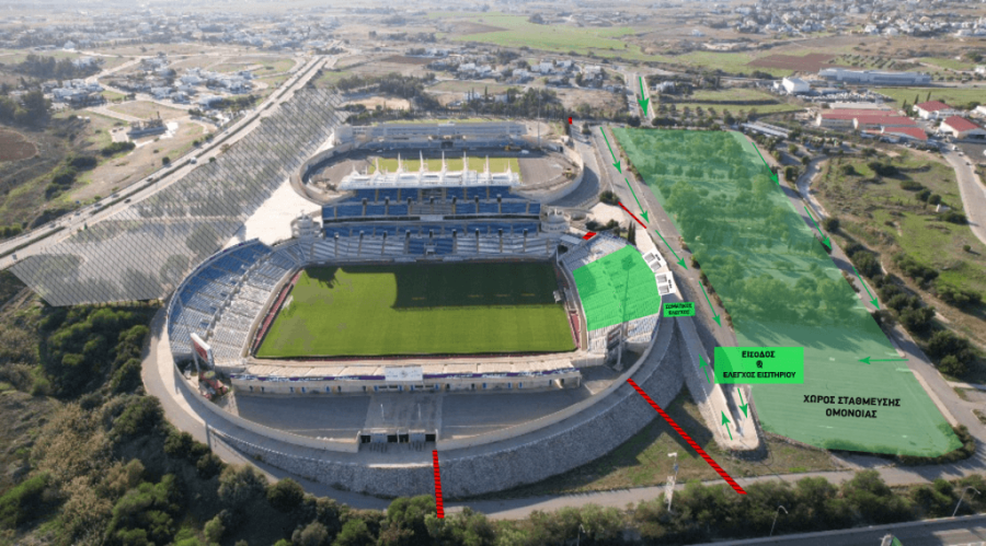 Οι φίλαθλοι μας παρακαλούνται όπως σταθμεύσουν στον Βόρειο χώρο στάθμευσης (όπως φαίνεται πιο κάτω):