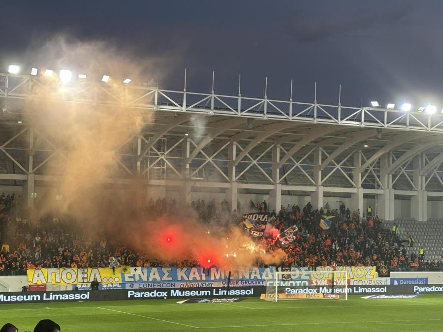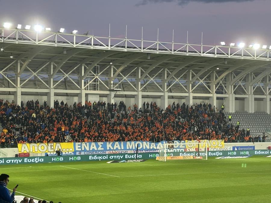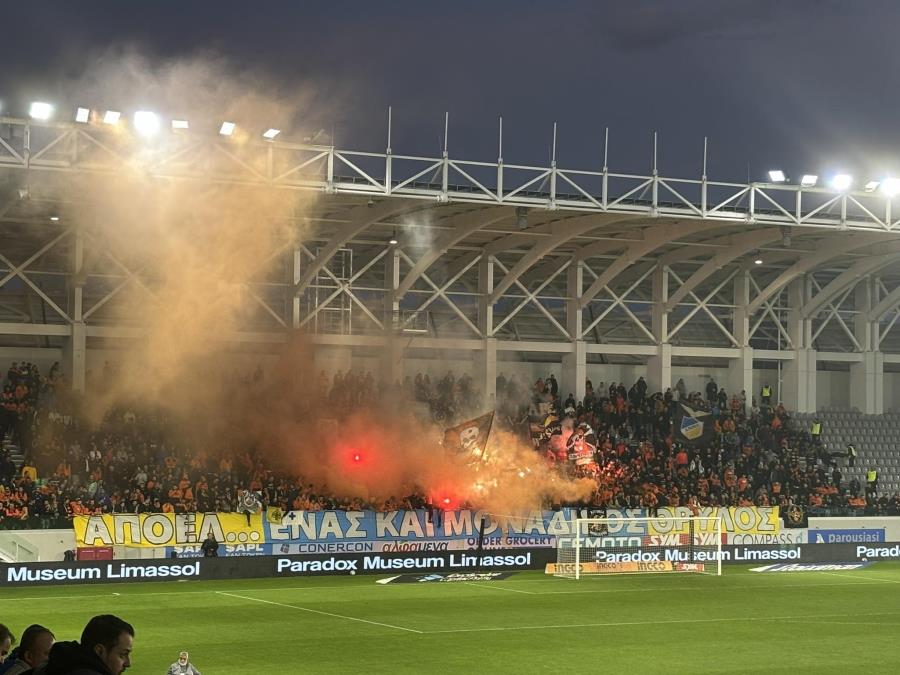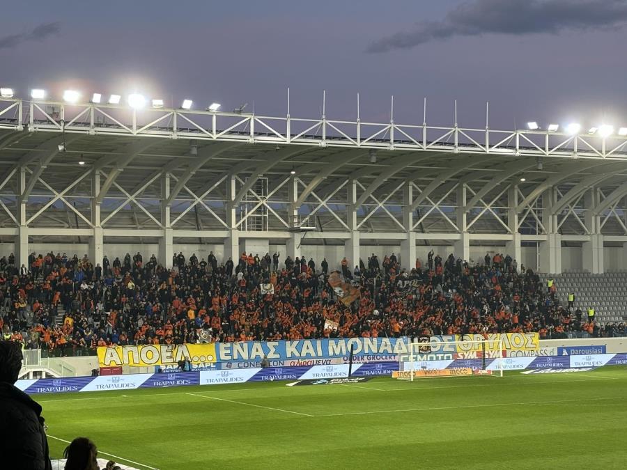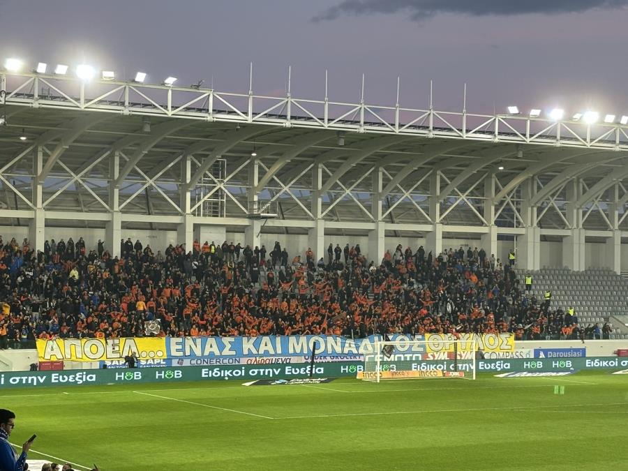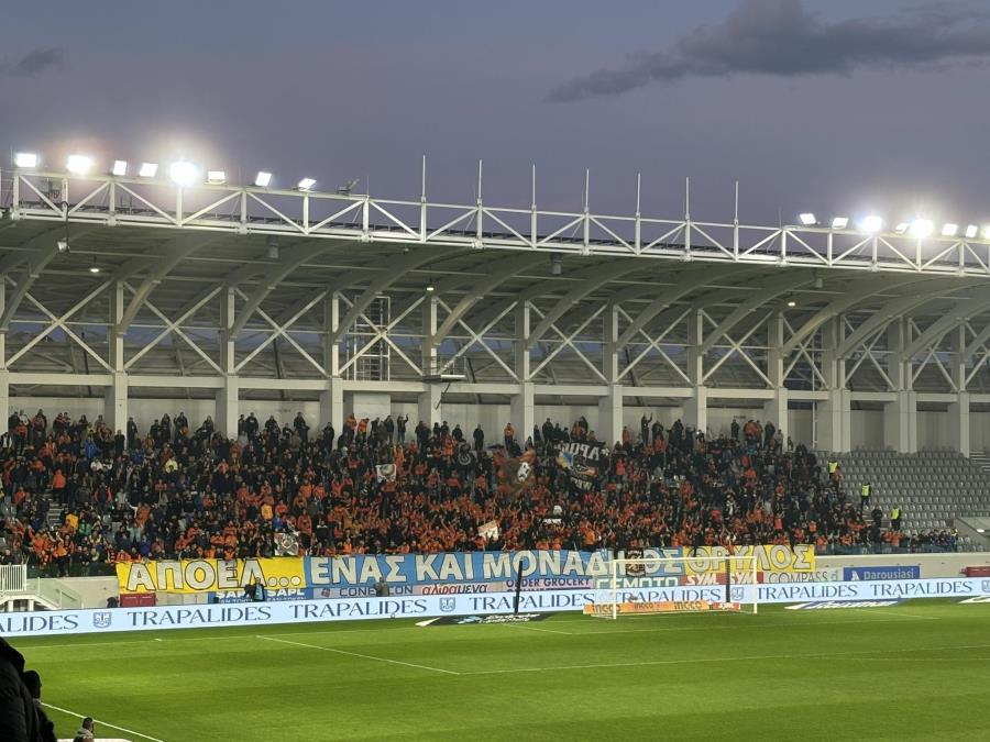 Οι οπαδοί του ΑΠΟΕΛ δίνουν δυναμικό παρών στο ματς κόντρα στον Απόλλωνα. «ΑΠΟΕΛ, ένας και μοναδικός θρύλος» αναγράφεται στο πανό των οπαδών της ομάδας.
