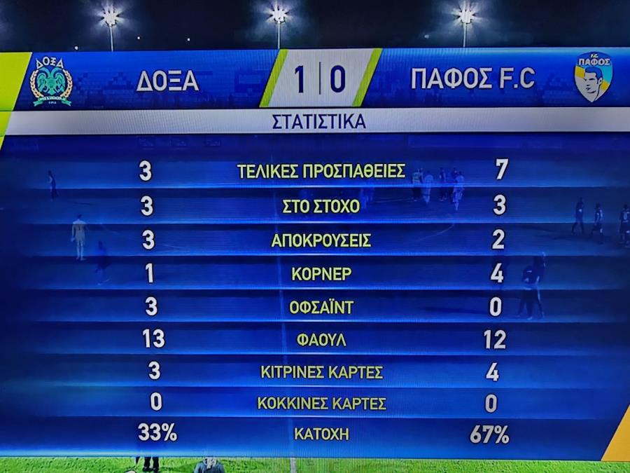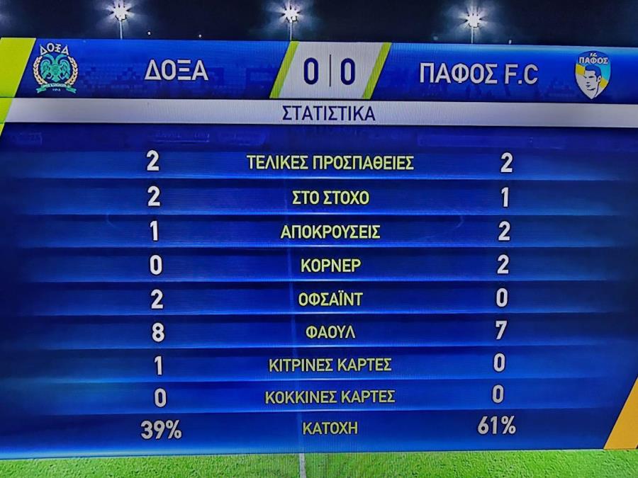 Η Πάφος κρατάει την μπάλα σε αυτά τα πρώτα 20 λεπτά, αλλά δεν καταφέρνει να διασπάσει την άμυνα της Δόξας.