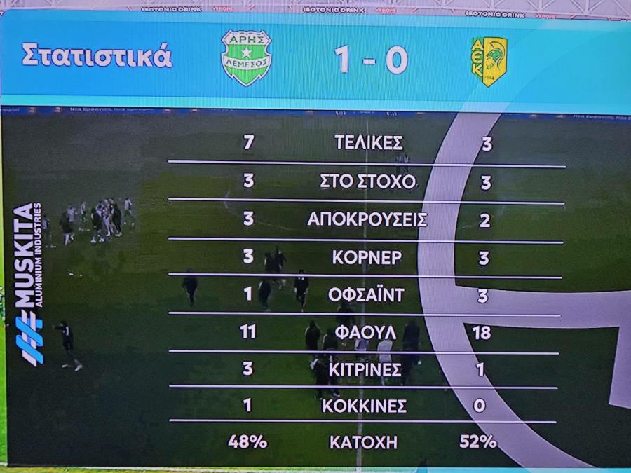 *Στο 58' αποβλήθηκε ο προπονητής του Άρη Αλεξέι Σπιλέφσκι.