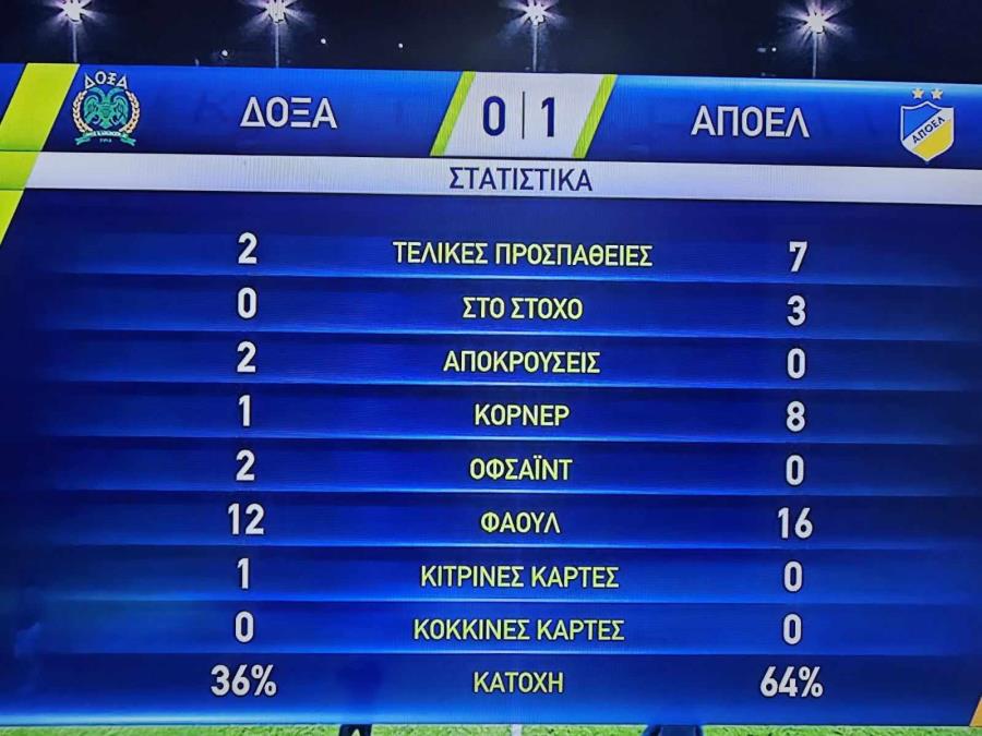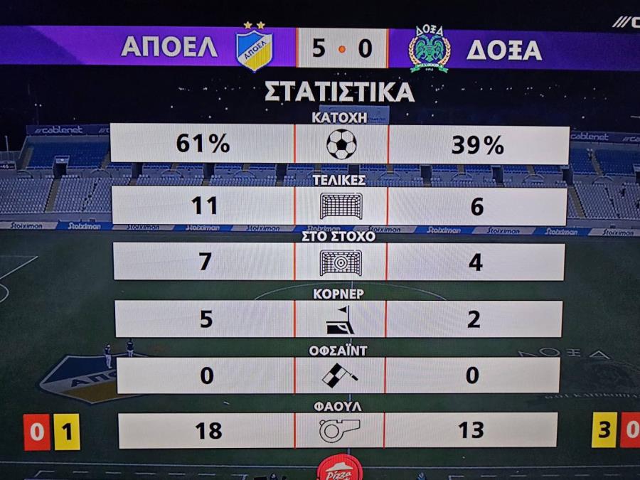 ΑΠΟΕΛ-Δόξα 5-0 (Κρέσπο 16', Βιγιαφάνιες 56', Δώνης 70', 77', Kβιλιτάια 90'+)