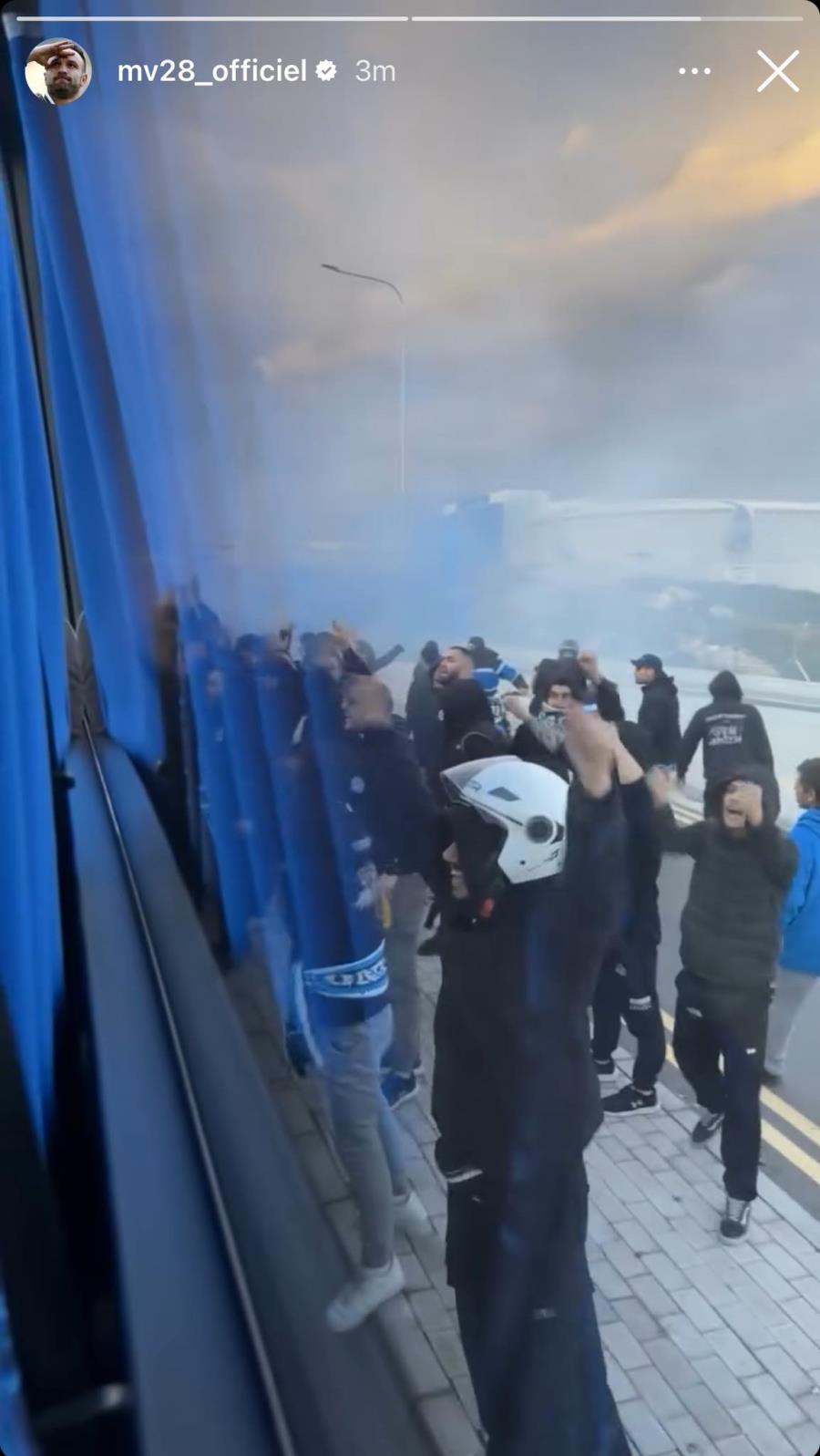 Λίγο πριν η αποστολή του Απόλλωνα φτάσει στο στάδιο «Αλφαμέγα», μερίδα οπαδών των «κυανολεύκων» πλησίασε το λεωφορείο και αποθέωσε τους ποδοσφαιριστές ζητώντας νίκη-πρόκριση επί της ΑΕΛ, με τον Ματιέ Βαλμπουενά να ανεβάζει στόρι στο Instagram.