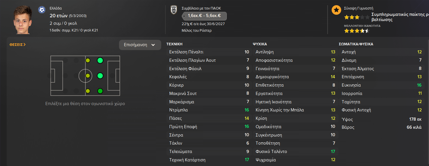 Χαρακτηριστικότερο παράδειγμα αποτελεί ο Σταύρος Πήλιος, ο οποίος απέκτησε ενεργή συμμετοχή στην ΑΕΚ του Ματίας Αλμέιδα και είδε την καρτέλα του σαφώς πιο βελτιωμένη, συγκριτικά με την αρχική εικόνα του στο παιχνίδι.