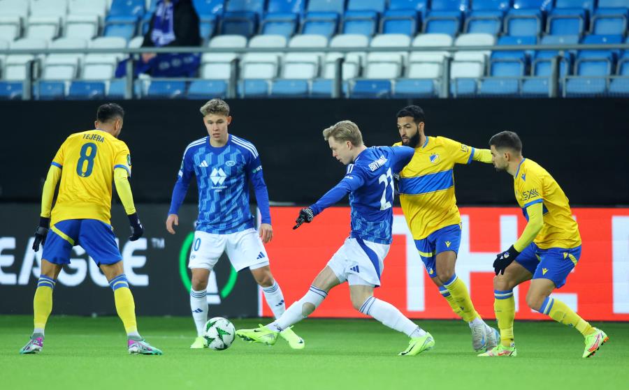 Στο α’ μέρος, οι γηπεδούχοι απείλησαν στο 3′ αλλά το πλασέ του Lund από καλή θέση πέρασε έξω.14′ Απειλεί η Μόλντε. Ο Enggard ευνοήθηκε από τις κόντρες, η μπάλα στρώθηκε μπροστά του, έπιασε το σουτ από μακριά και ανάγκασε τον Μπέλετς σε δύσκολη απόκρουση σε κόρνερ.