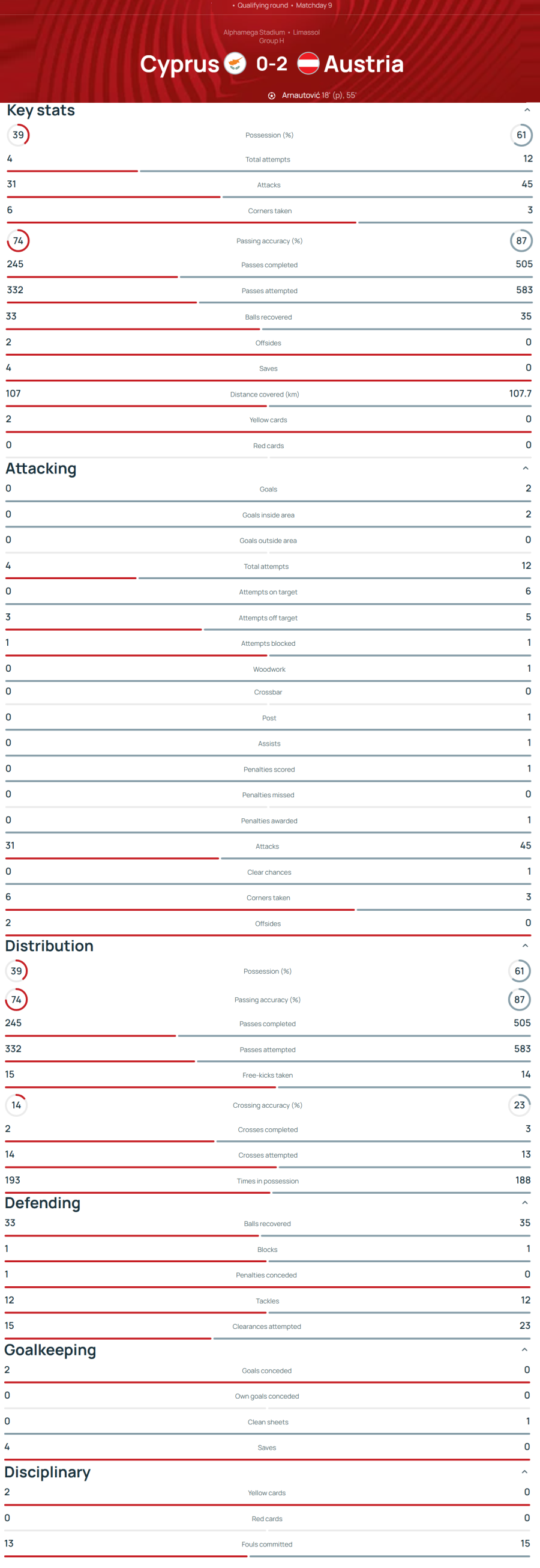 6 Σεπτεμβρίου 2025: Αυστρία - Κύπρος 1-0