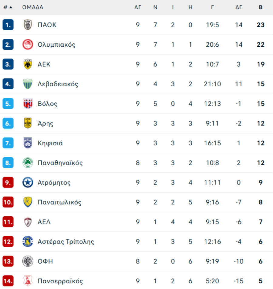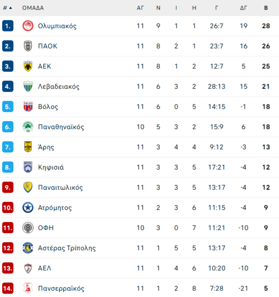 10η αγωνιστική: 8-9 Νοεμβρίου 2025