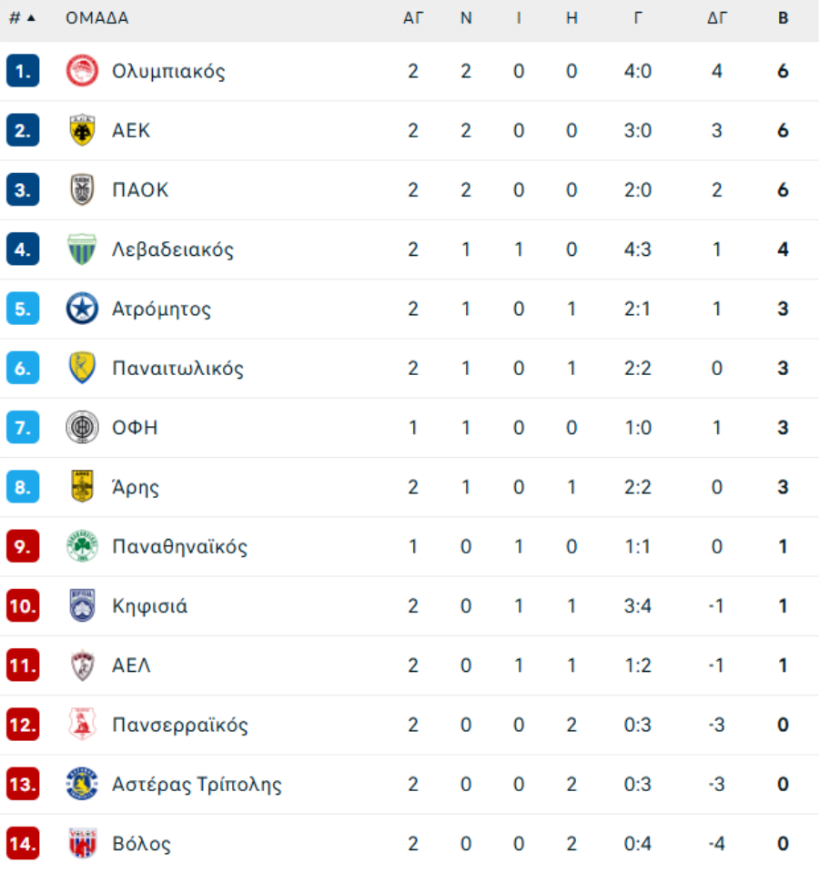 2η αγωνιστική: 30-31 Αυγούστου 2025