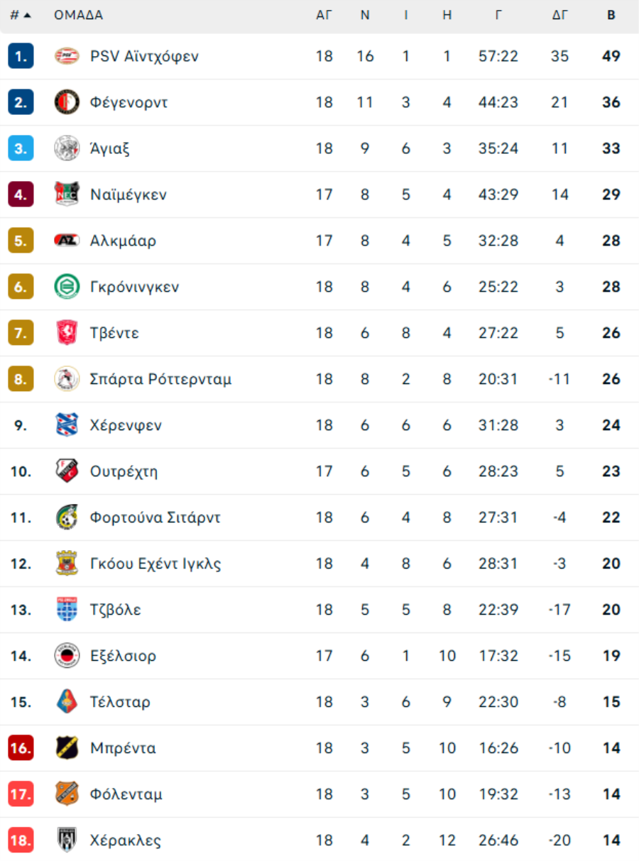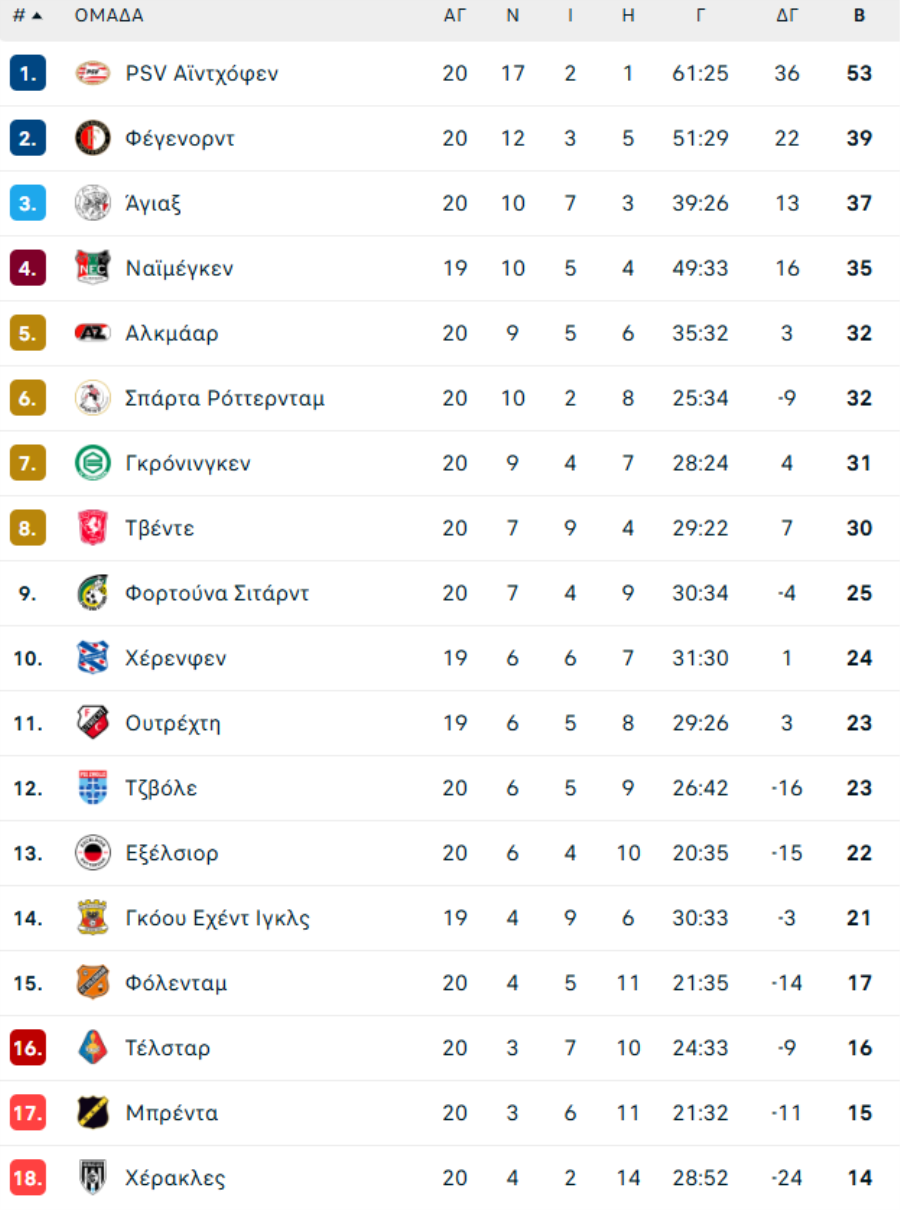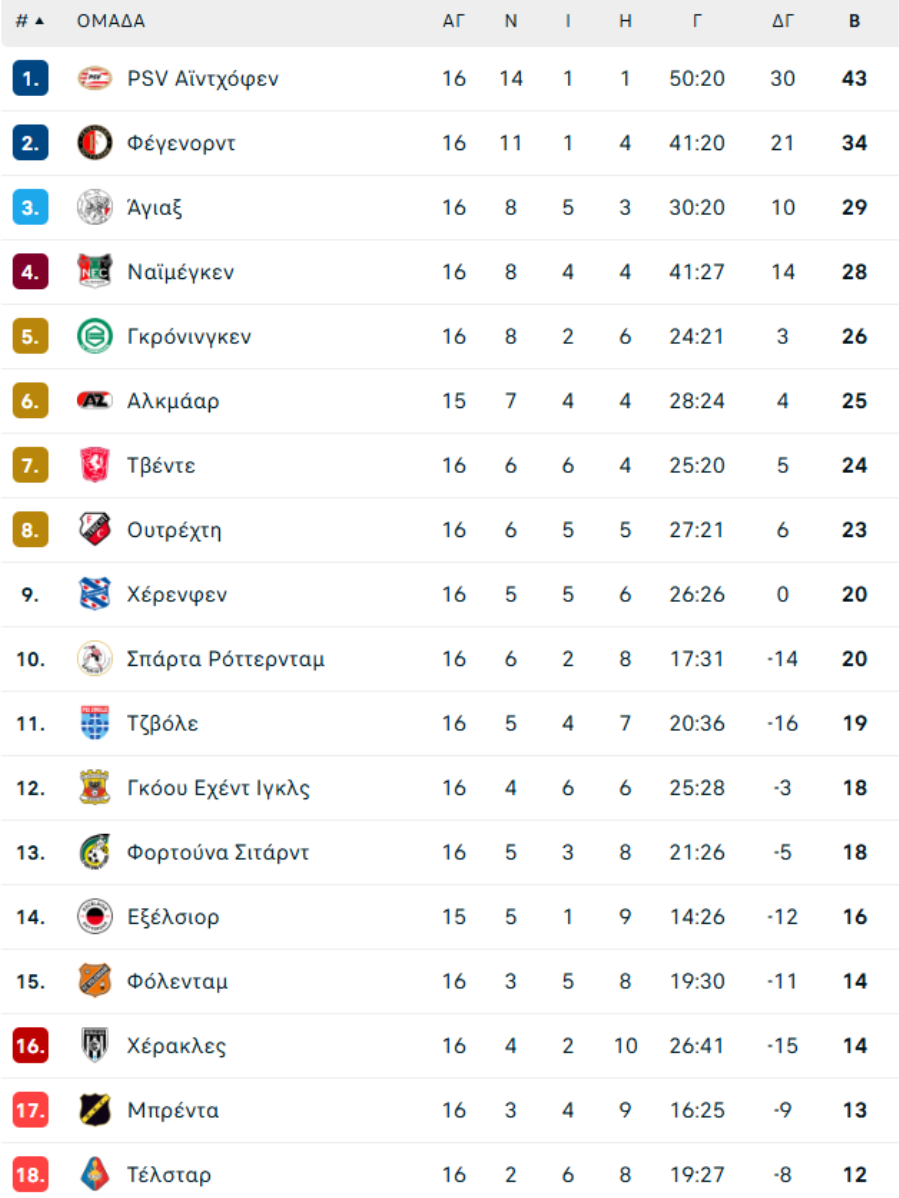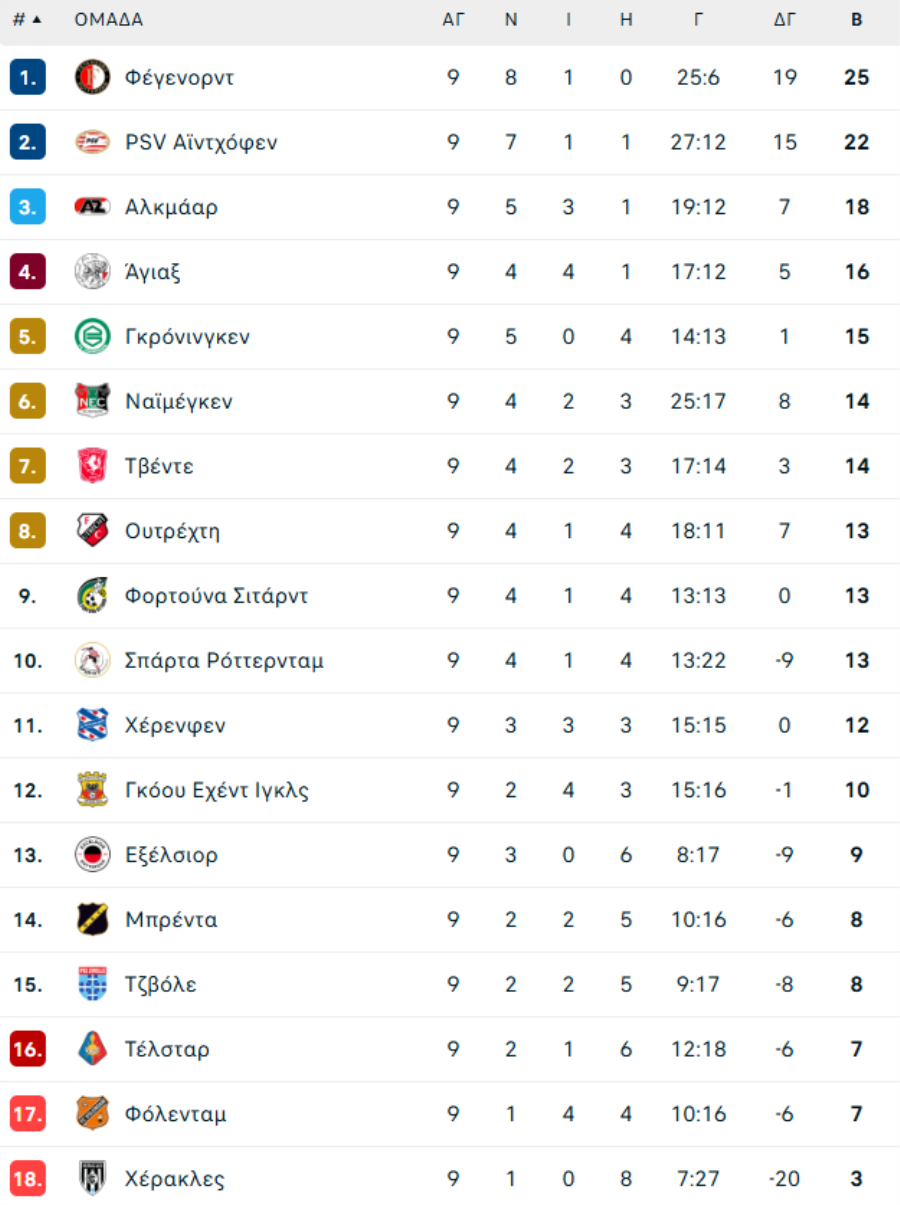 ΟΛΛΑΝΔΙΑ: Το πρόγραμμα της EREDIVISIE (2025/26)
