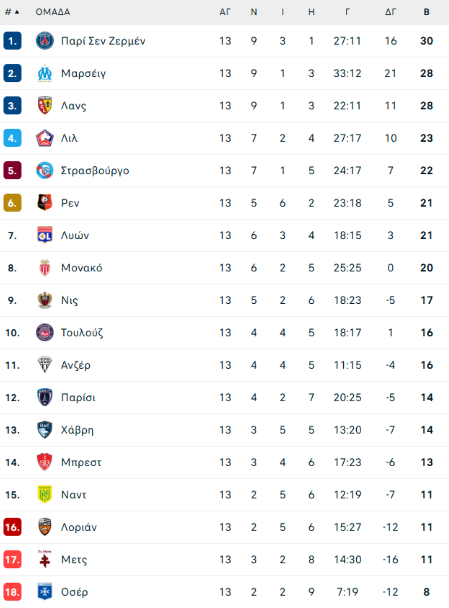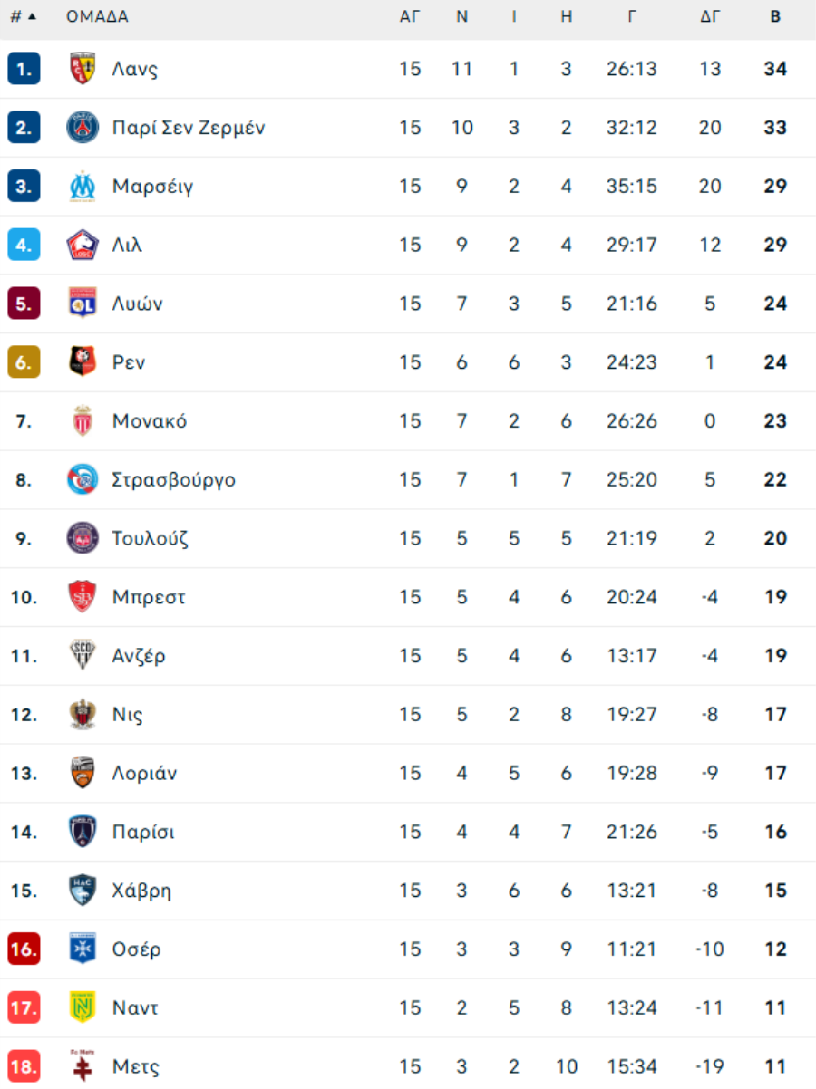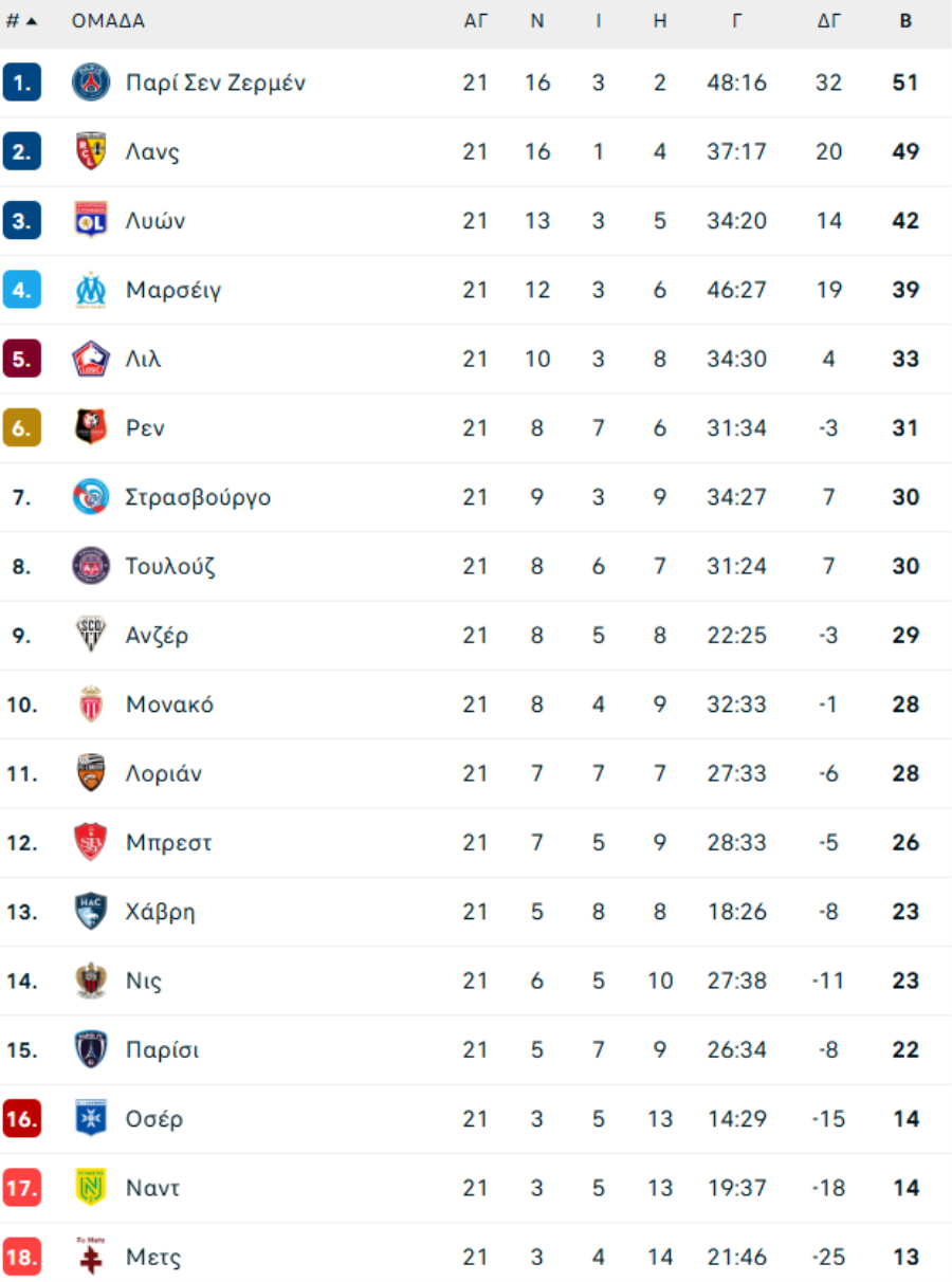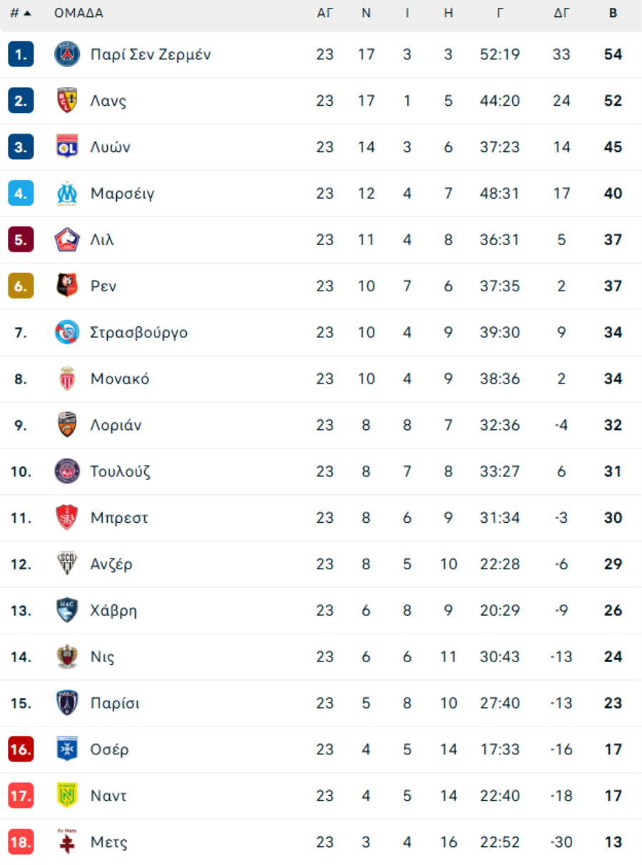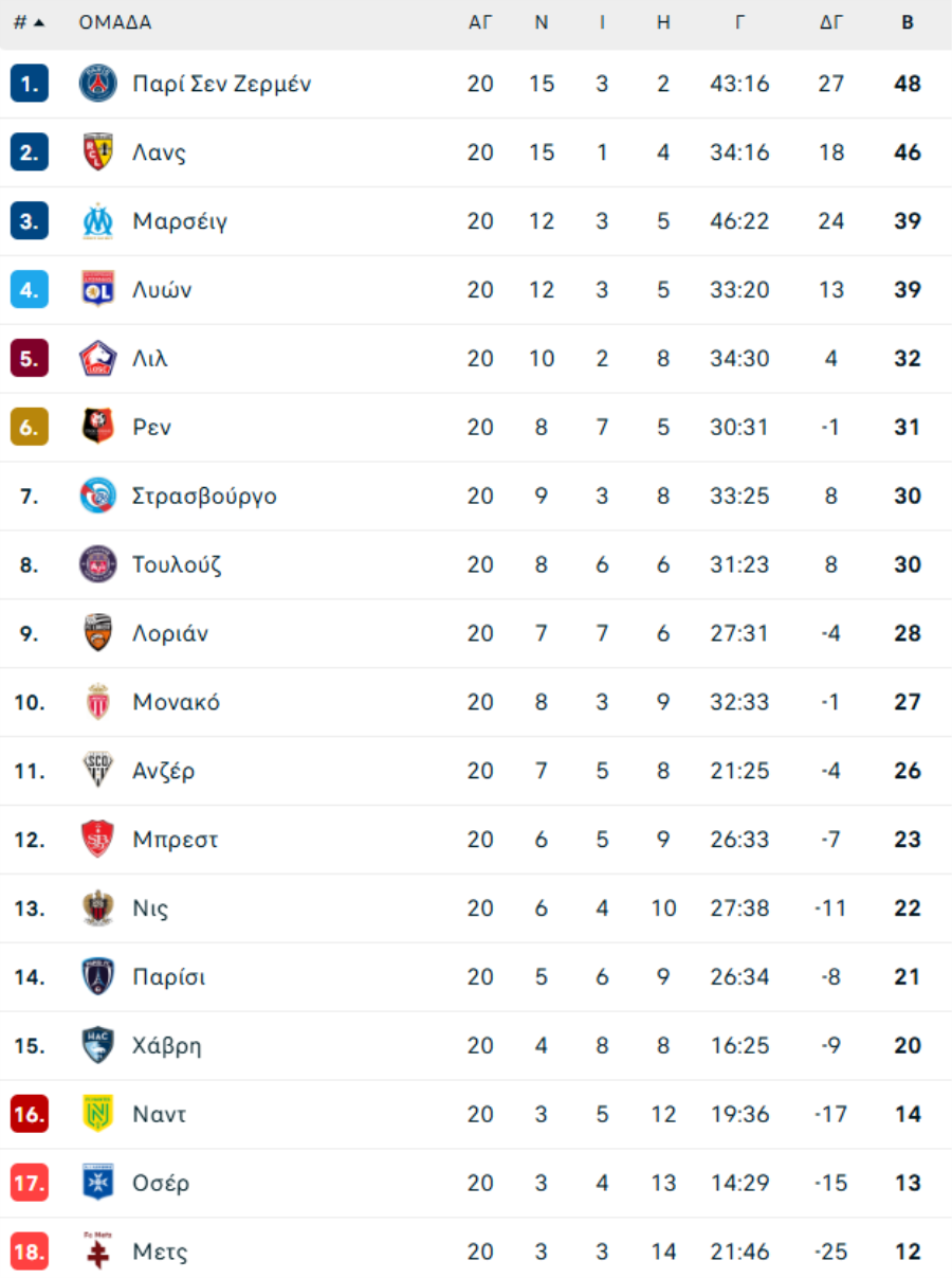 Λοριάν-Ρεν 4-0 (45'+4' Σουμανό, 47' Τοσίν, 65' Παζίς, 69' Μπρι)
