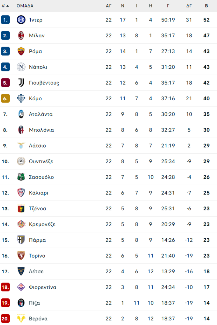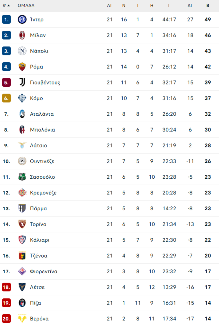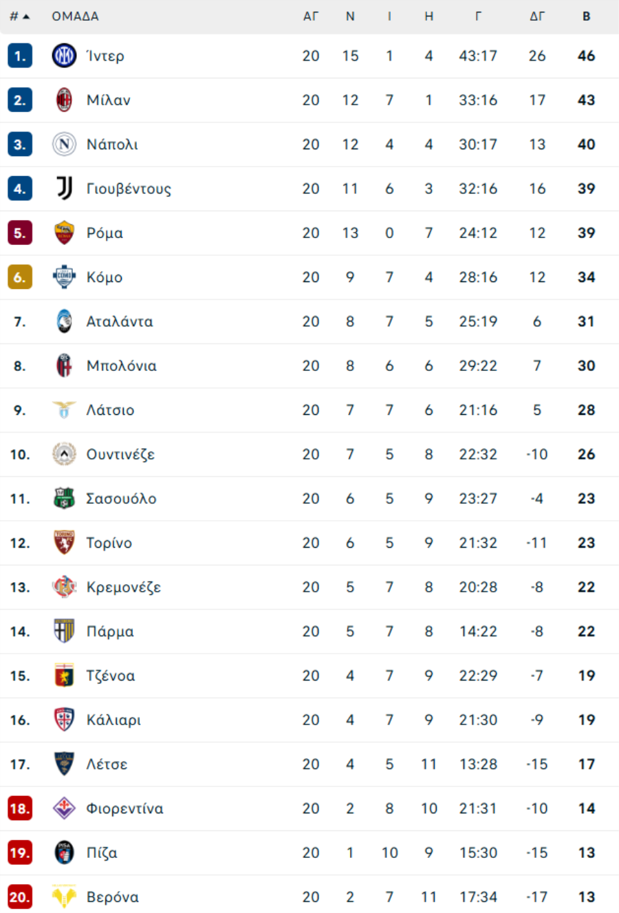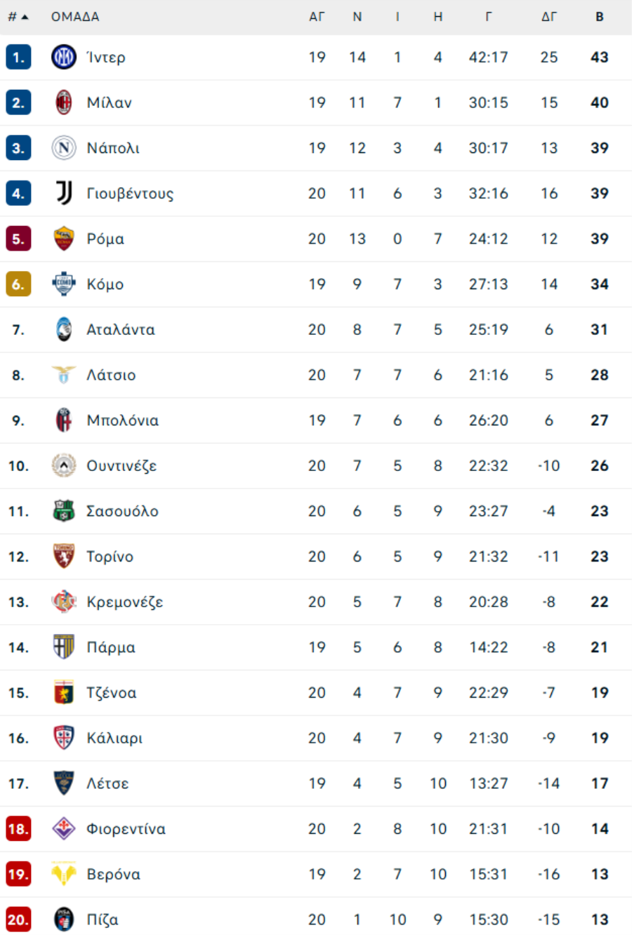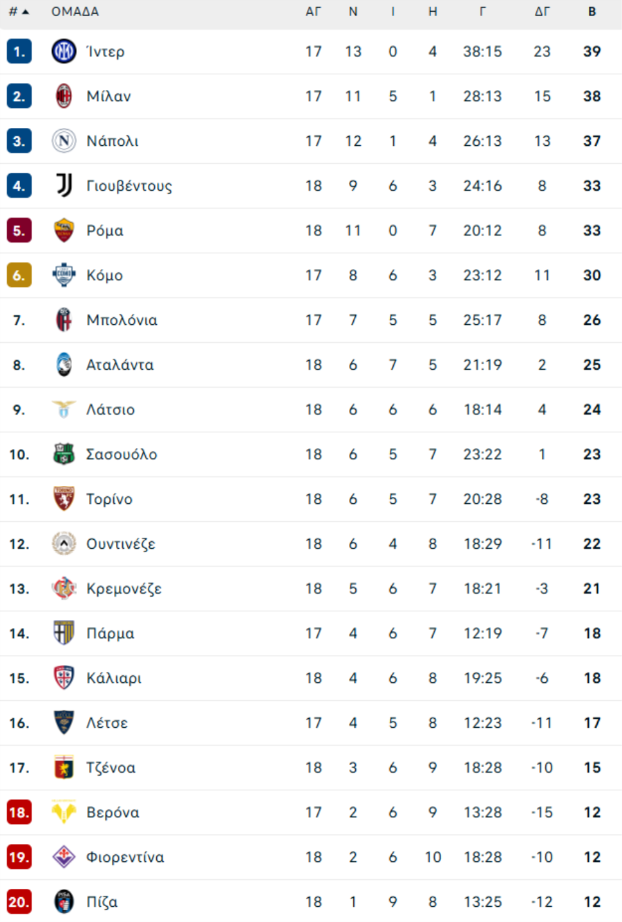 ΙΤΑΛΙΑ: Το πρόγραμμα της SERIE Α (2025/26)