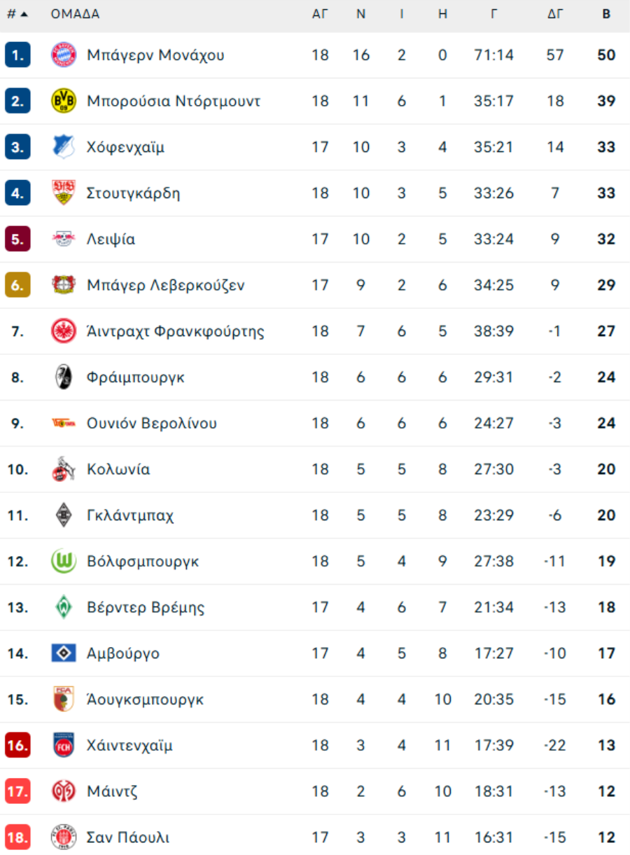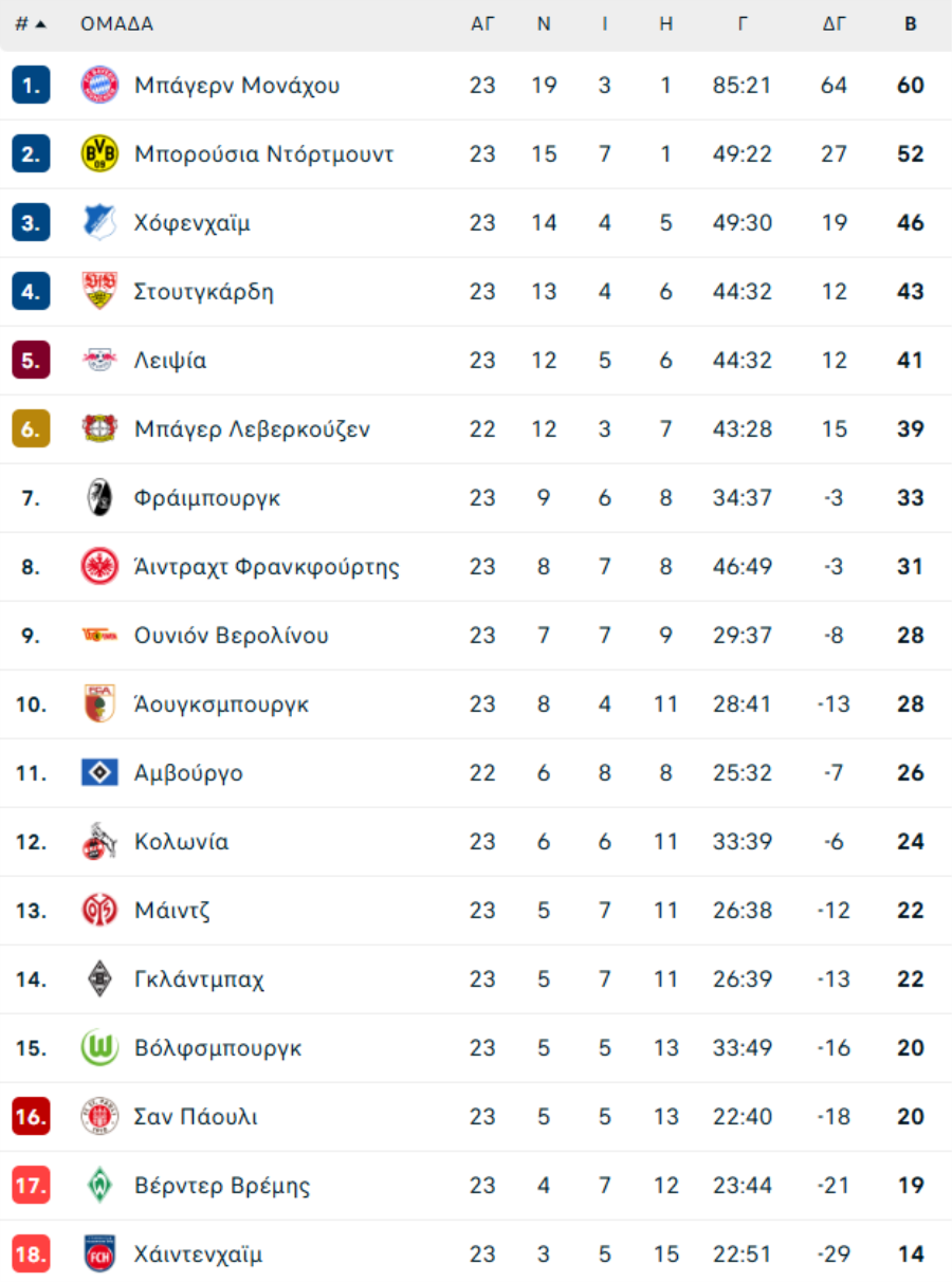 Ζανκτ Πάουλι-Χόφενχαϊμ 0-3 (54' Τουρέ, 59' Κράμαριτς, 79' Πρόμελ)