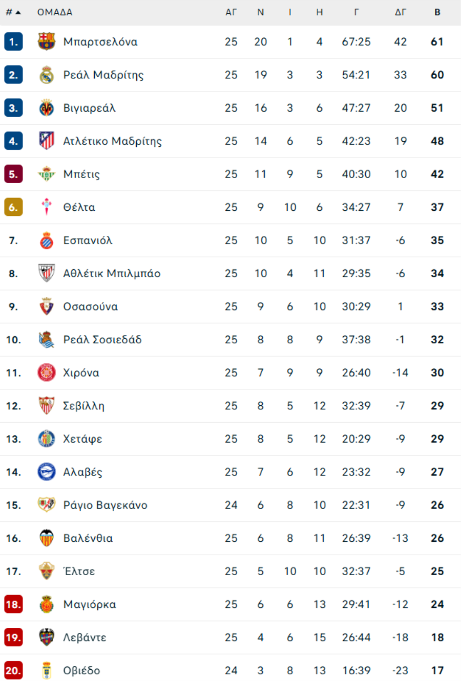 ΙΣΠΑΝΙΑ: Το πρόγραμμα της PRIMERA DIVISION (2025/26)