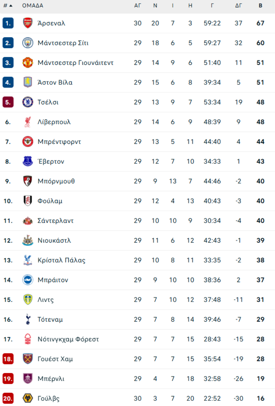 Τσέλσι-Μπράιτον 1-3 (24’ Έντσο – 77’, 90’+10’ Γουέλμπεκ, 90’+2’ Ντε Κάιπερ)