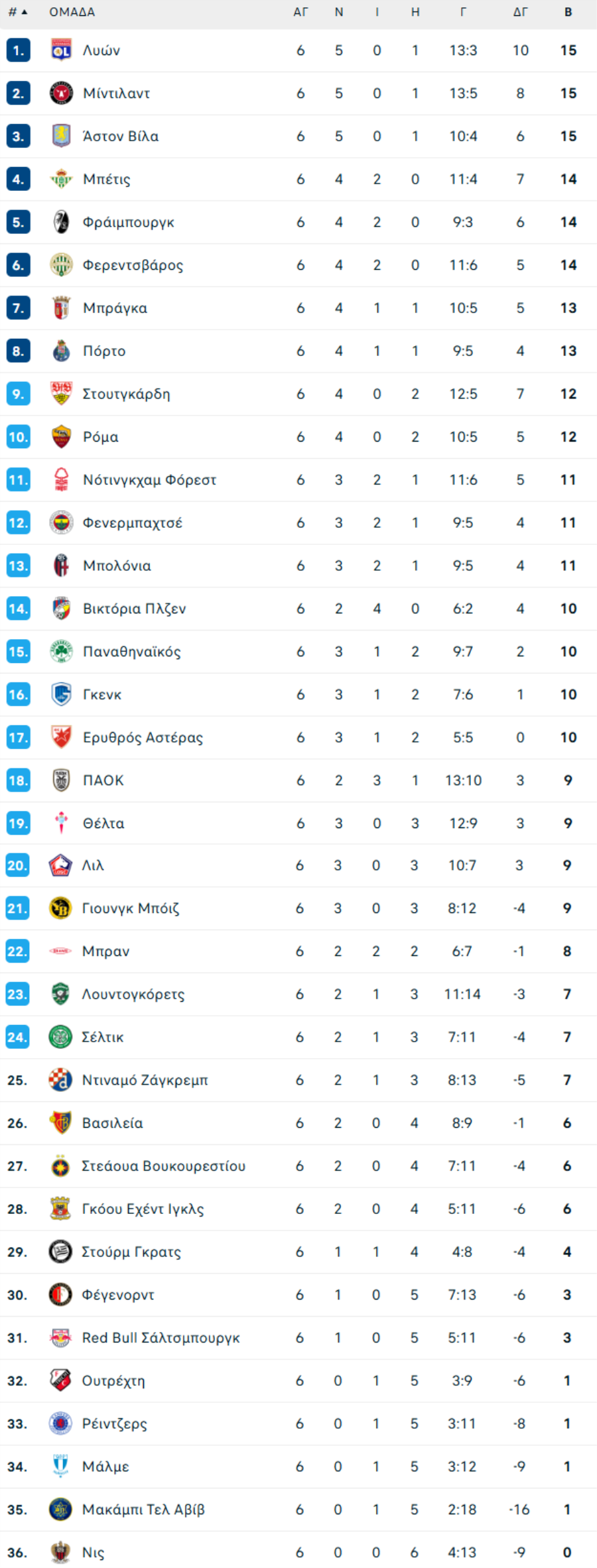 6η αγωνιστική League Phase: 11 Δεκεμβρίου