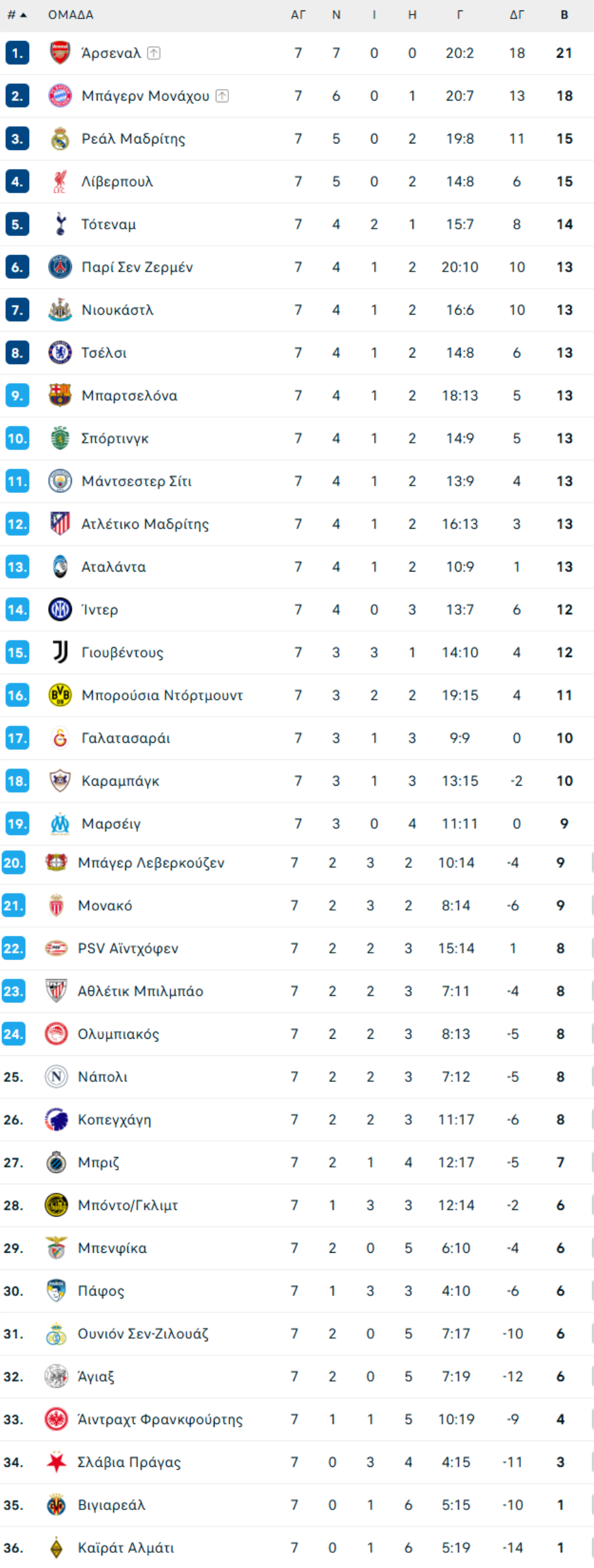 20-21 Ιανουαρίου 2026: 7η αγωνιστική League Phase Champions League 2025/26