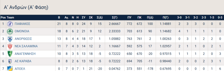 Απόλλωνας-Lemesos Volleyball 3-0 (25-20, 25-21, 25-22).
