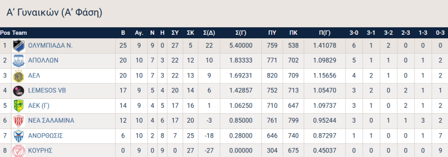 ΑΕΛ-Απόλλωνας με 3-0 σετ (25-19, 25-18, 25-16).