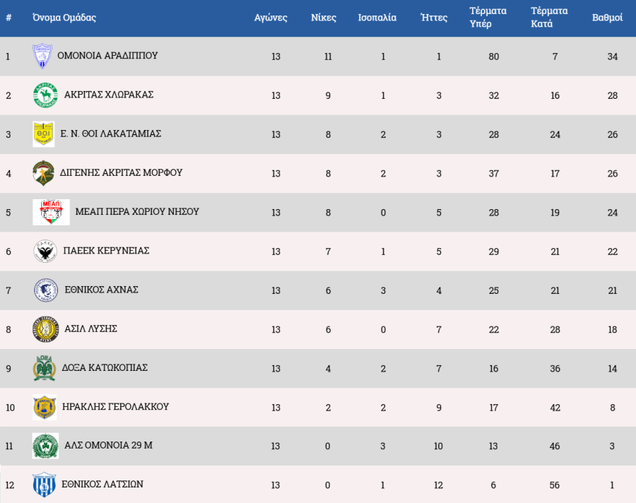 Η βαθμολογία του πρωταθλήματος ΕΔΩ.