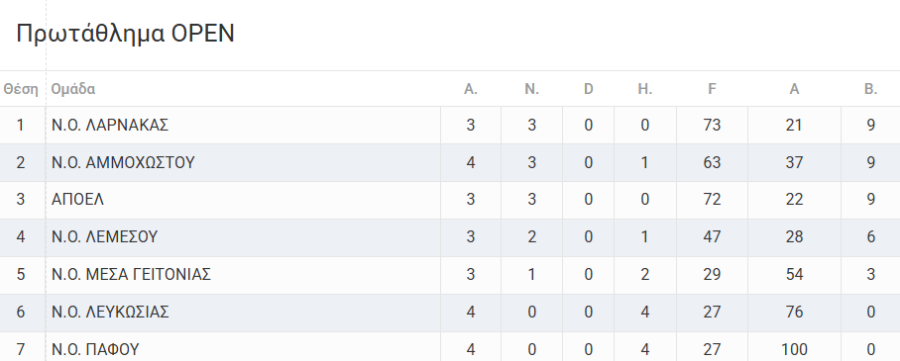Ν.Ο. ΛΕΥΚΩΣΙΑΣ VS ΑΠΟΕΛ 7-22